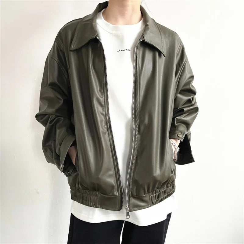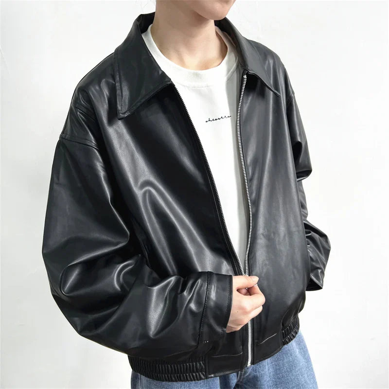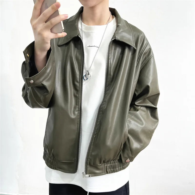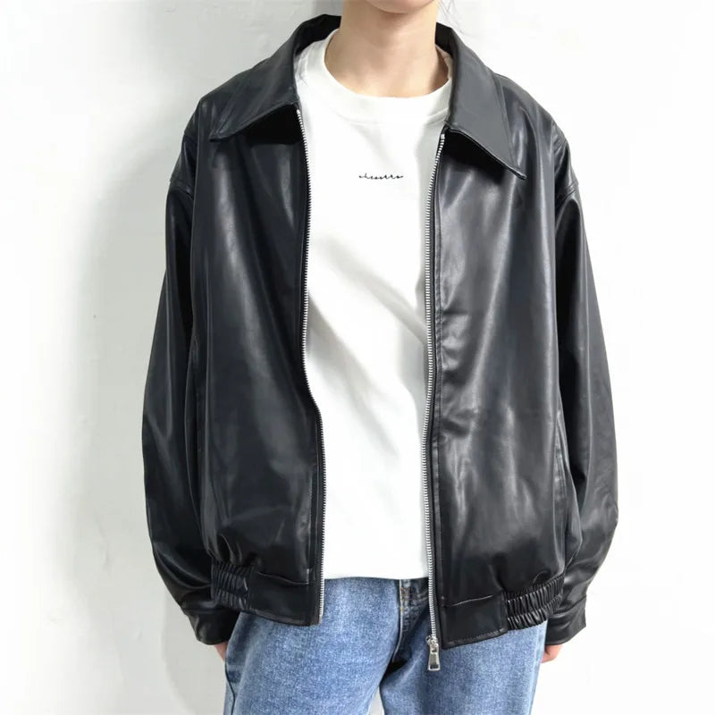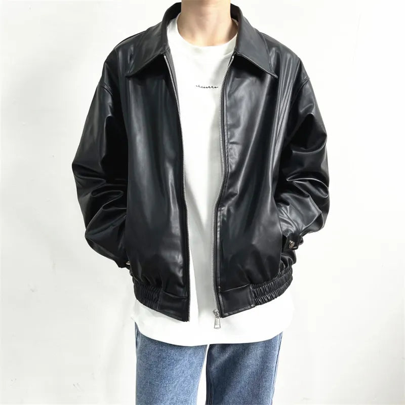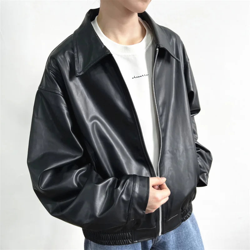 saferido Short Leather Jacket Men Oversized Zipper Motorcycle Jackets Men Streetwear Hip-hop Loose Bomber Jacket Mens Korean Coat M-2XL