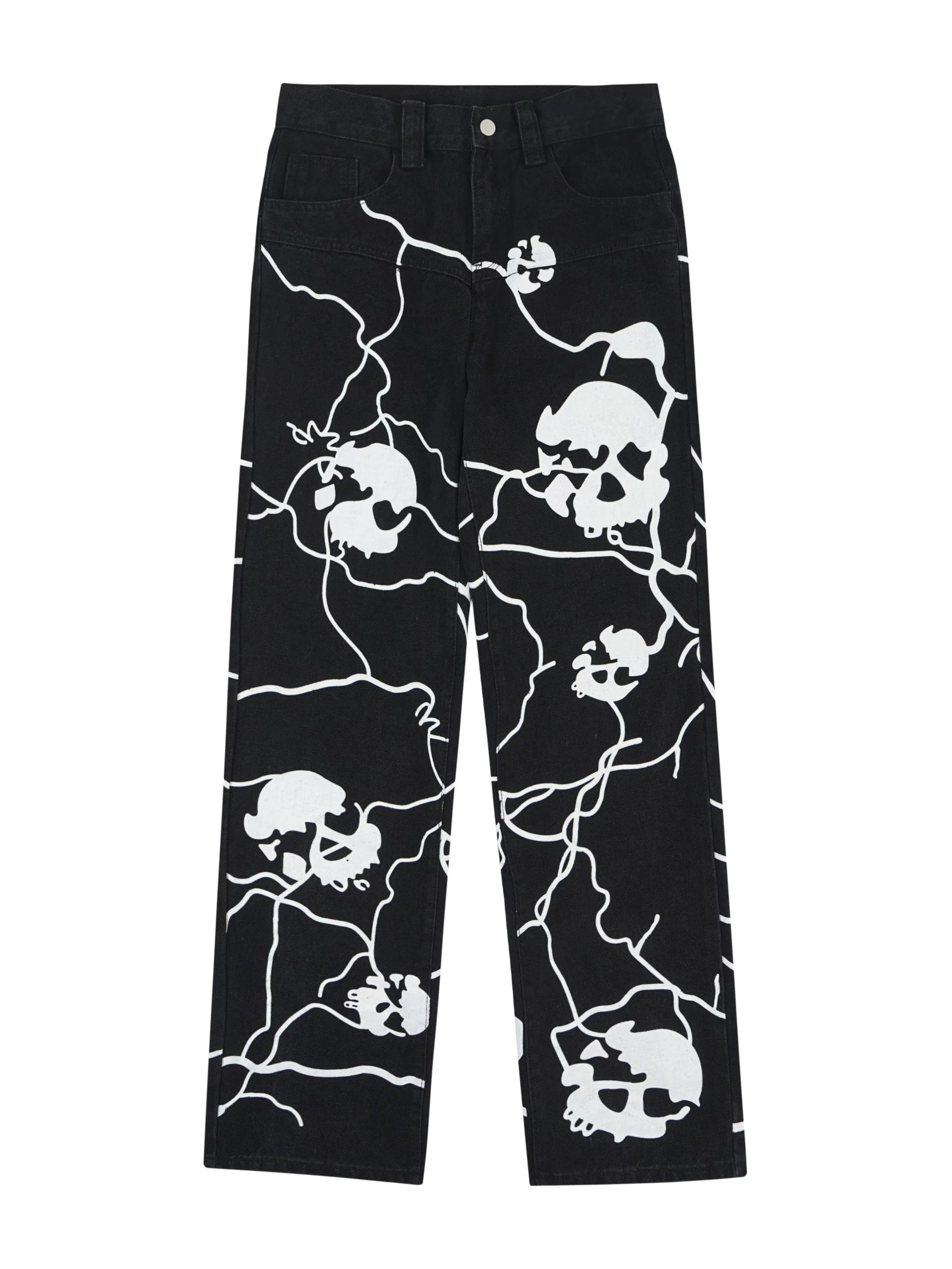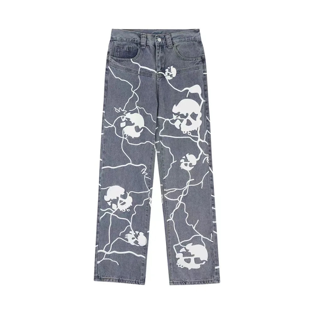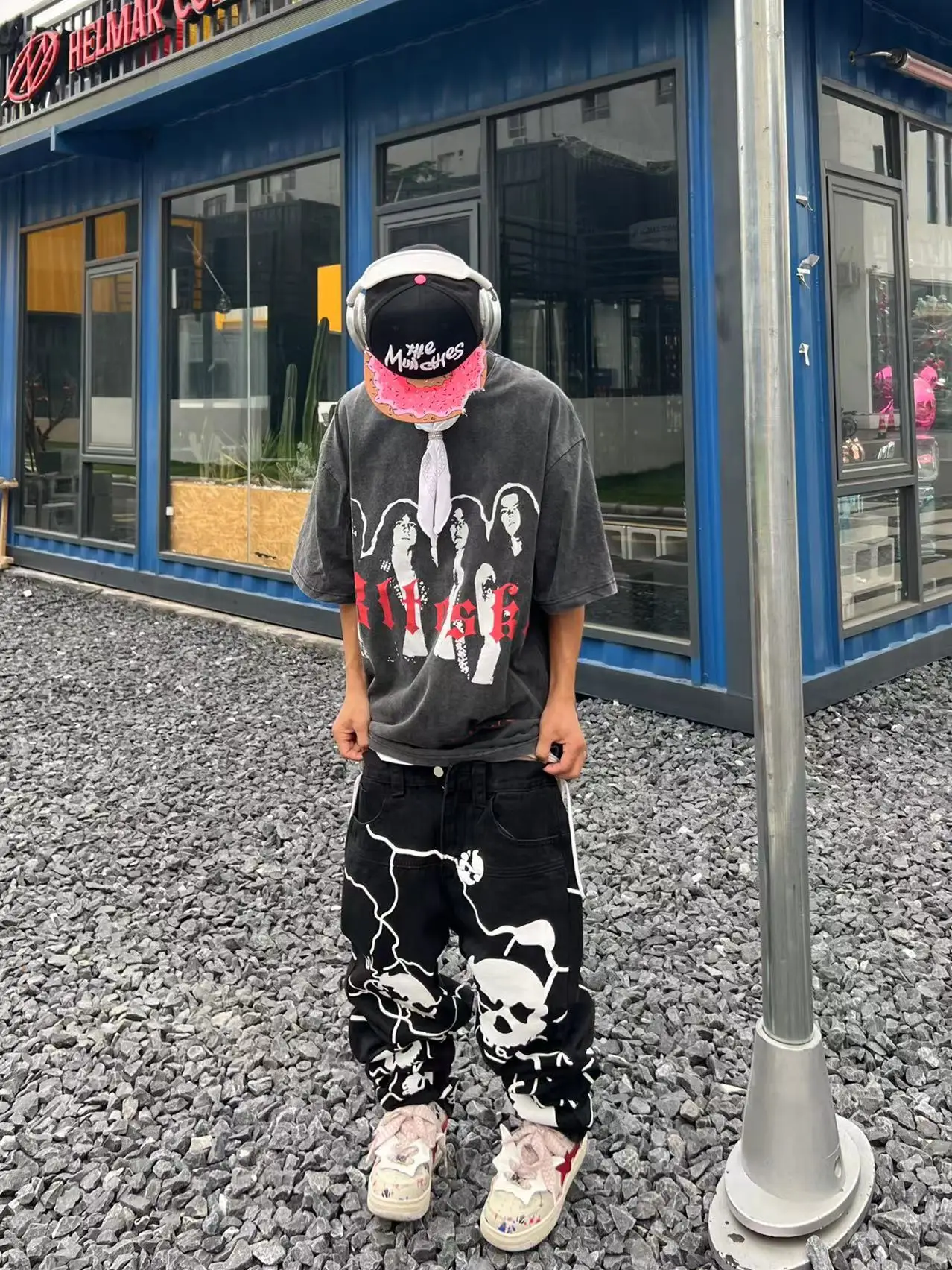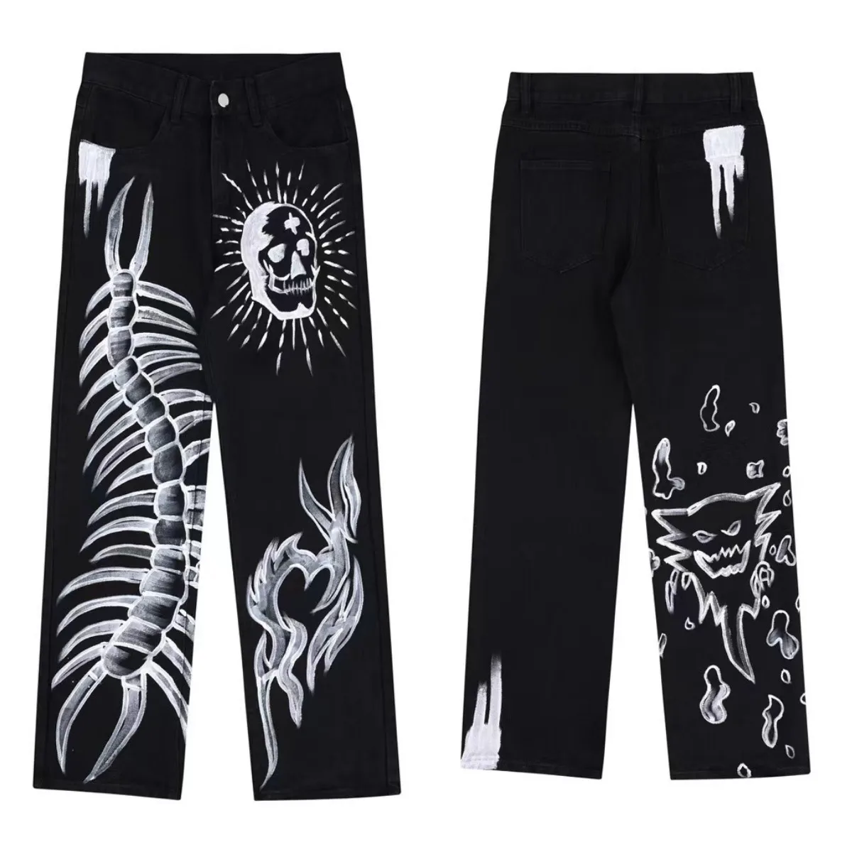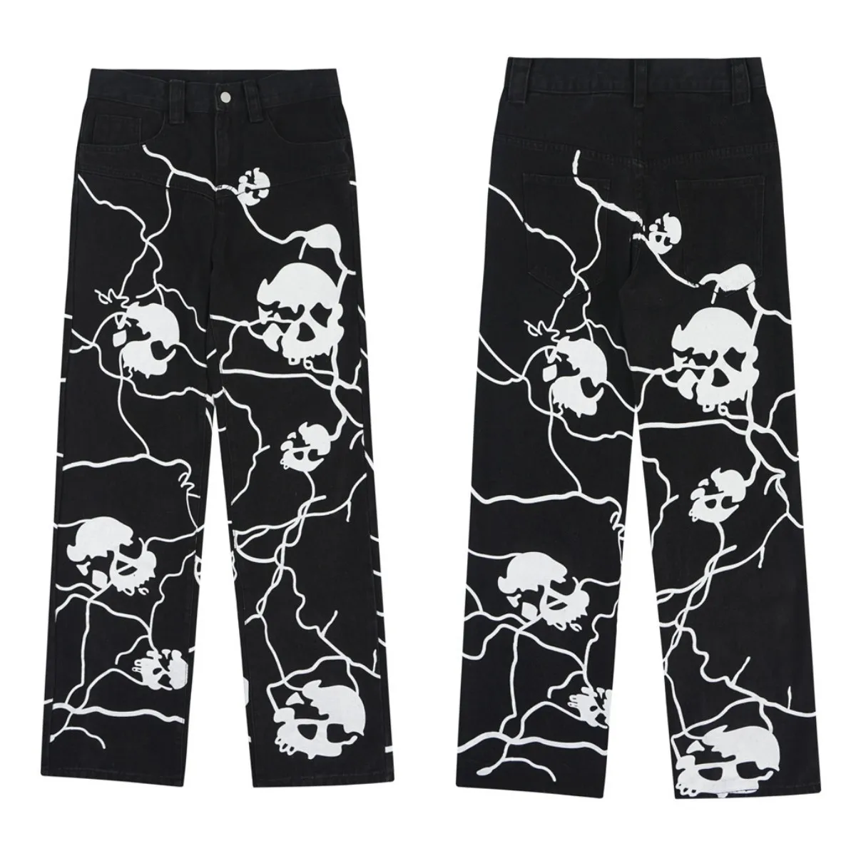 saferido Skull Printed Man Woman Black Jeans Trousers for Men Trends Clothes Pants Men's Punk Trendyol Streetwear Hip Hop Casual Straight