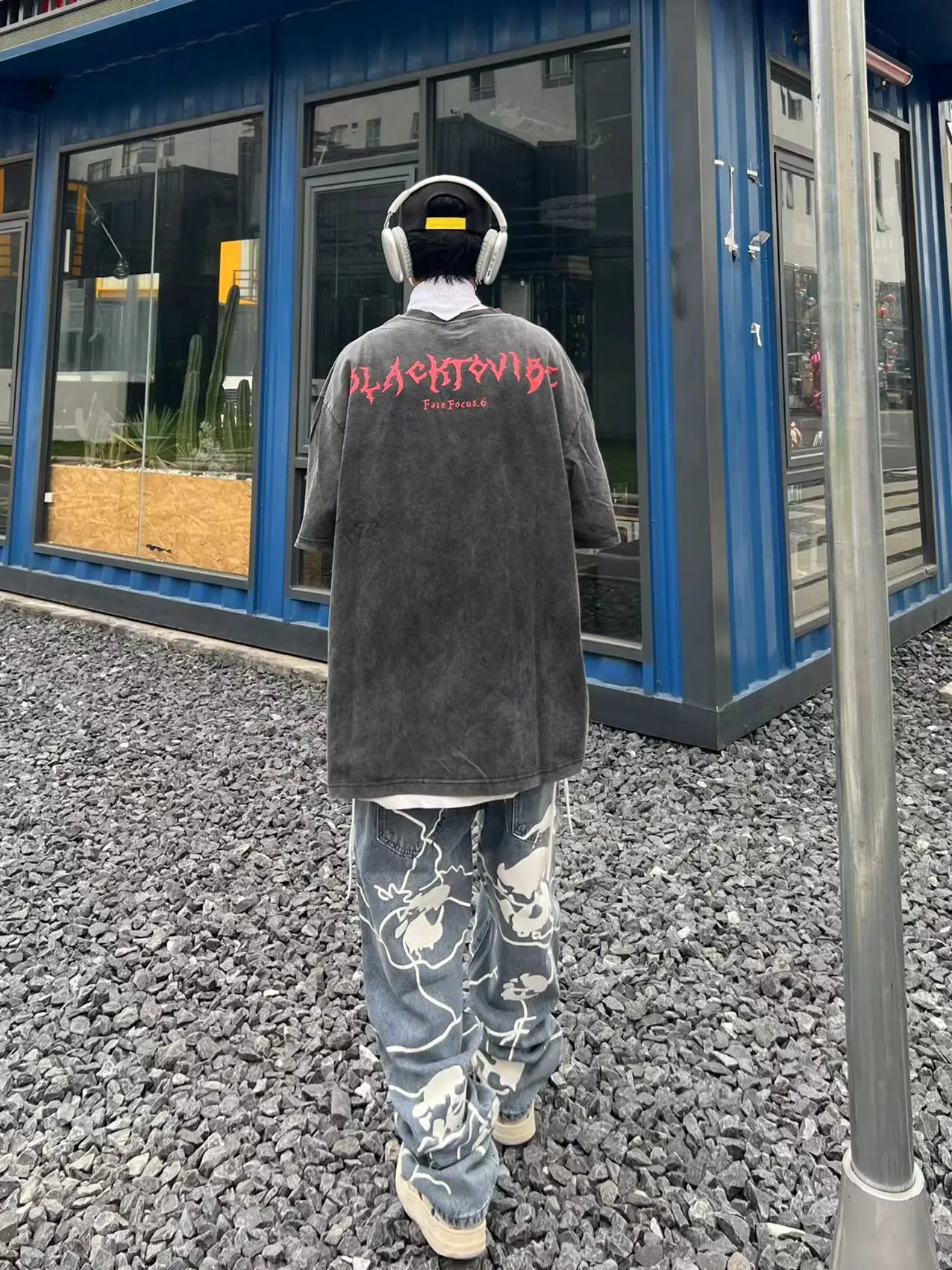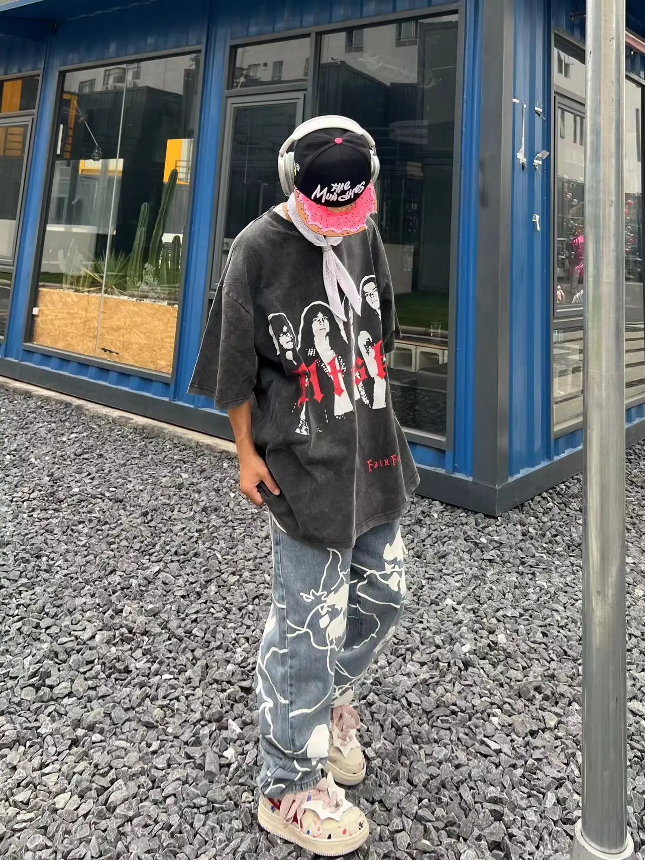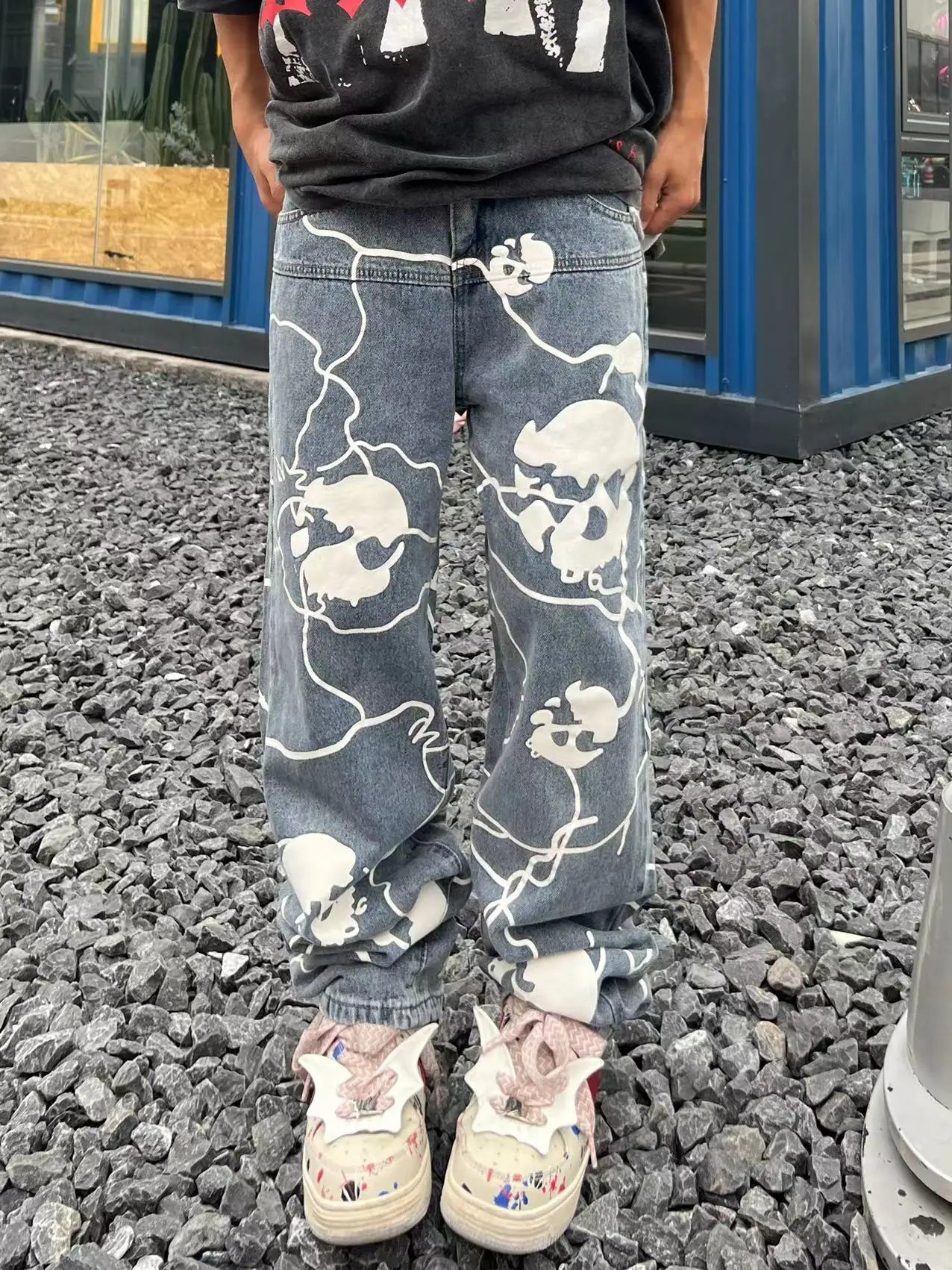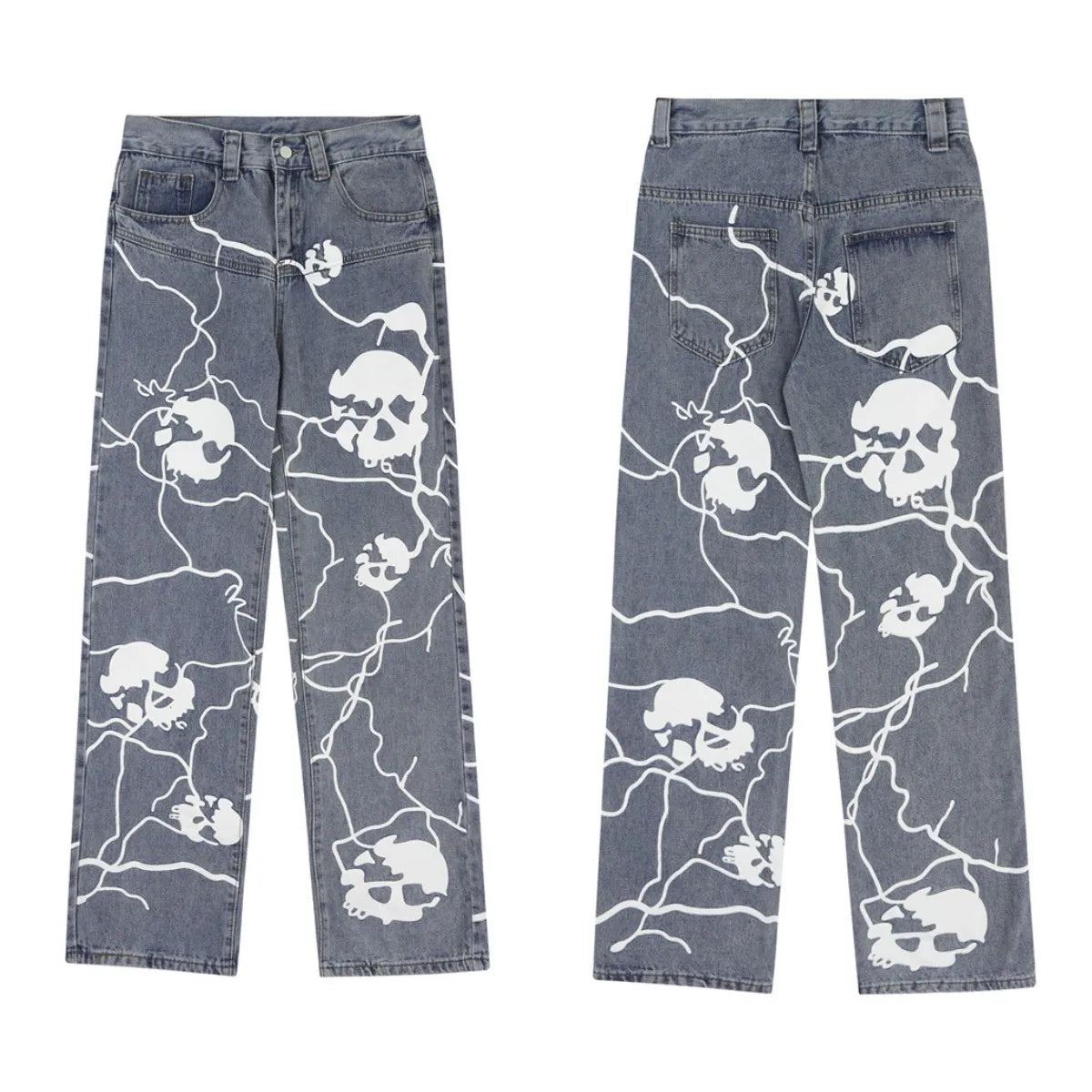 saferido Skull Printed Man Woman Black Jeans Trousers for Men Trends Clothes Pants Men's Punk Trendyol Streetwear Hip Hop Casual Straight