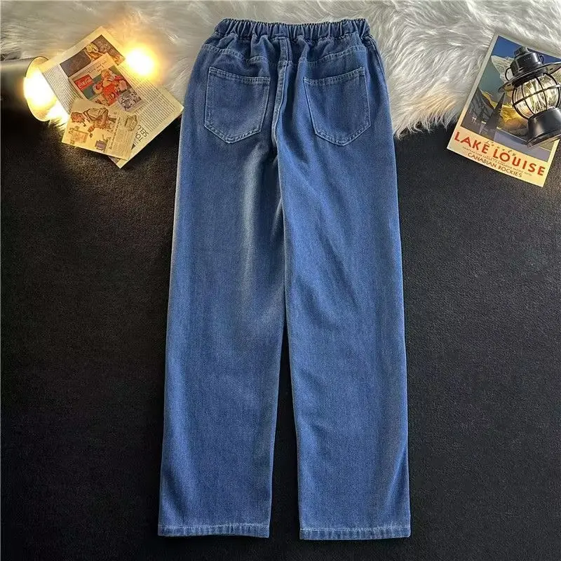 saferido Spring And Autumn Harajuku Hong Kong Style Simple Loose Trend Ins Versatile Casual Drawstring Straight Long Pants Jeans For Men