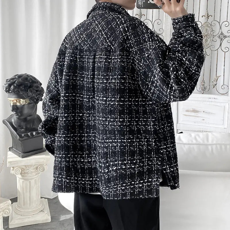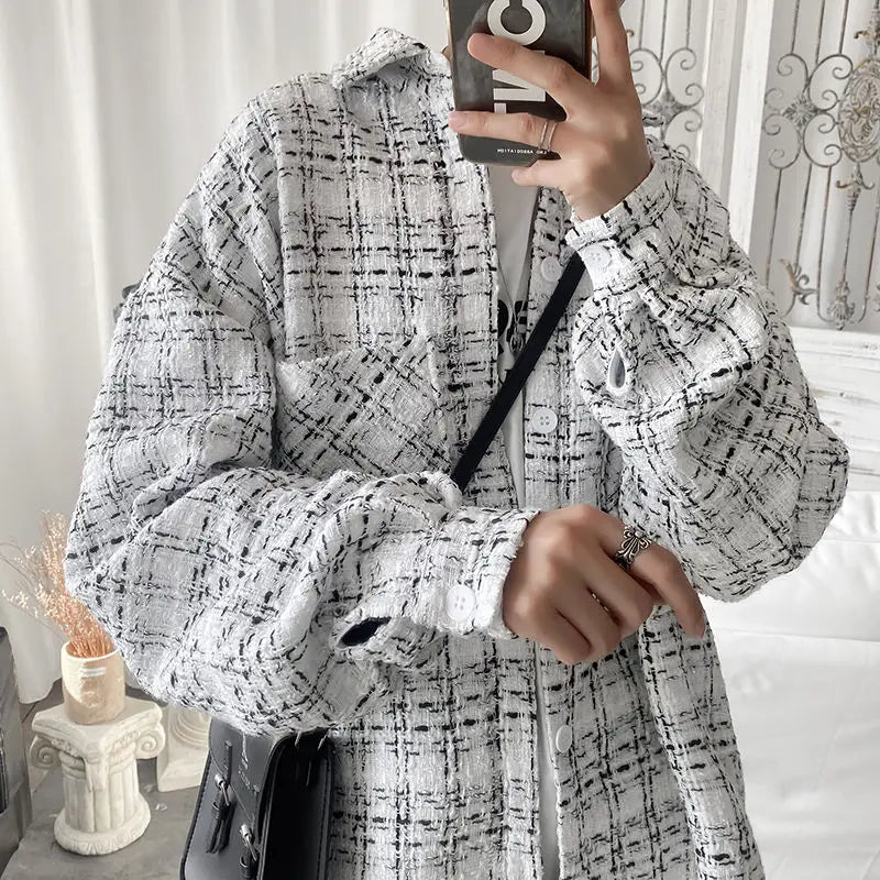 saferido Spring and autumn male plaid shirt Korean fashion casual jacket released man harajuku streetwear retro sleeve shirt