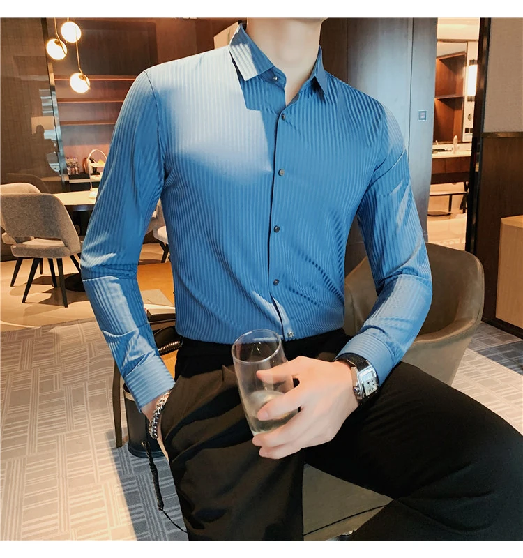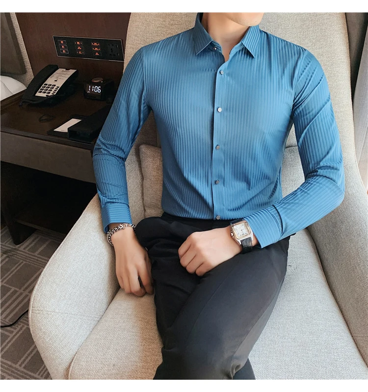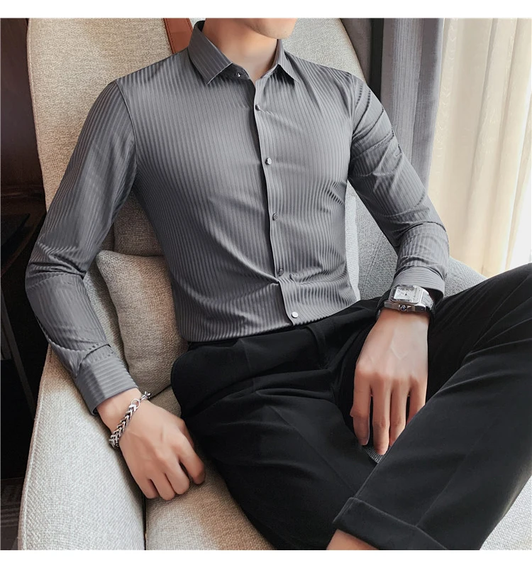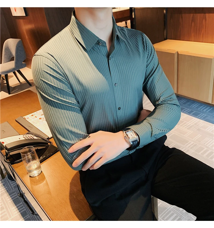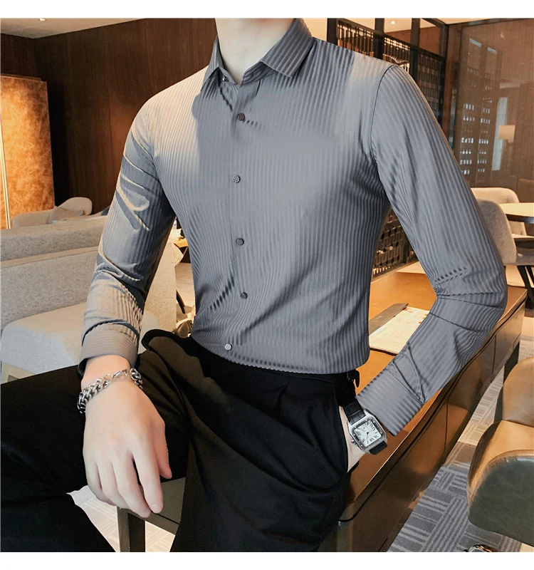 saferido Spring Autumn Long Sleeve Men Vintage Shirts Fashion stripe Slim Fit Korean Mens Shirt Luxe Homm Office Dress Shirts S-4XL