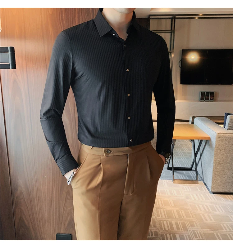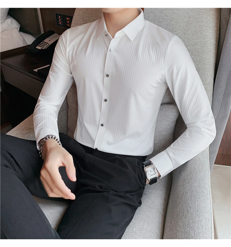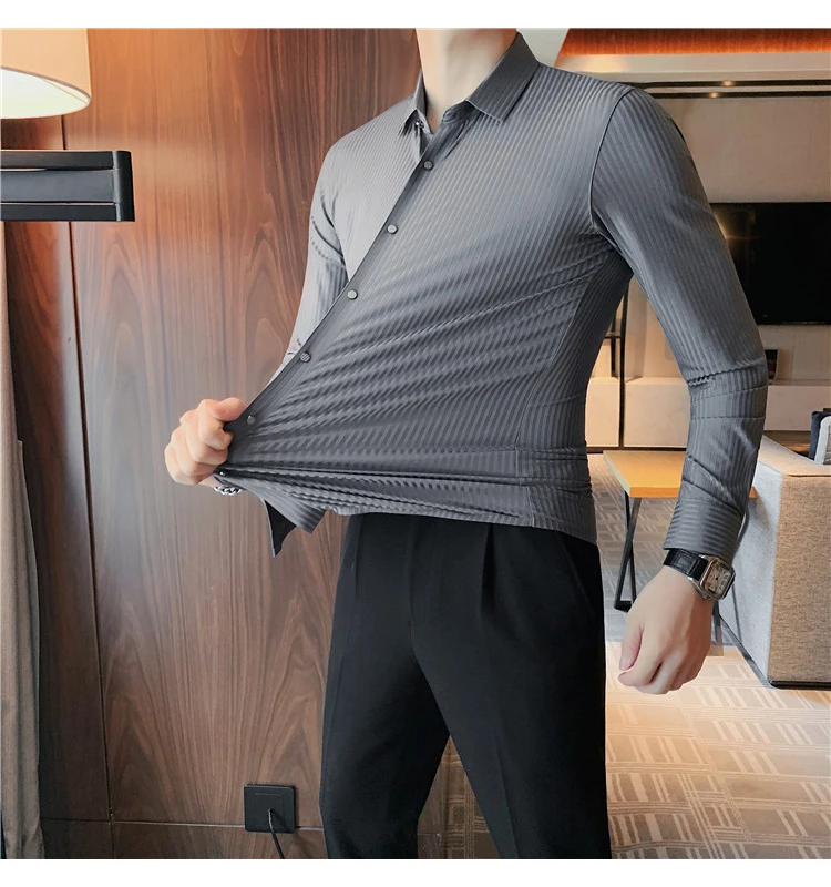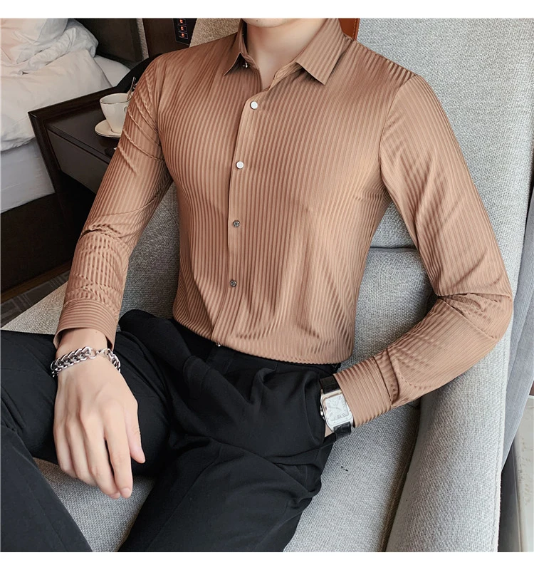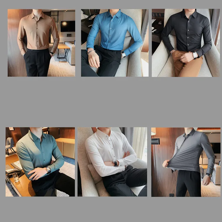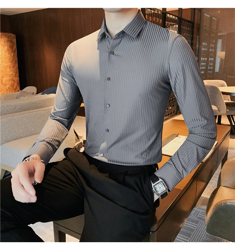 saferido Spring Autumn Long Sleeve Men Vintage Shirts Fashion stripe Slim Fit Korean Mens Shirt Luxe Homm Office Dress Shirts S-4XL