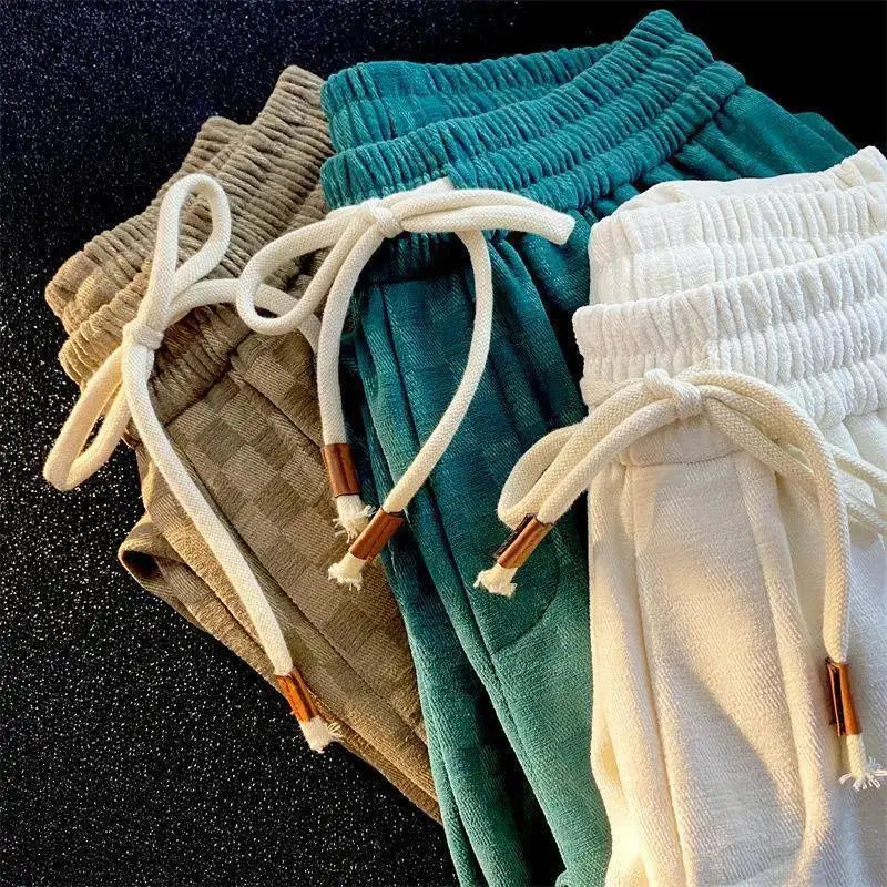 saferido Spring Autumn Plaid Printing Straight Pants Man Street Loose Casual Wide Leg Trousers Korean Style Motion Men's Clothing