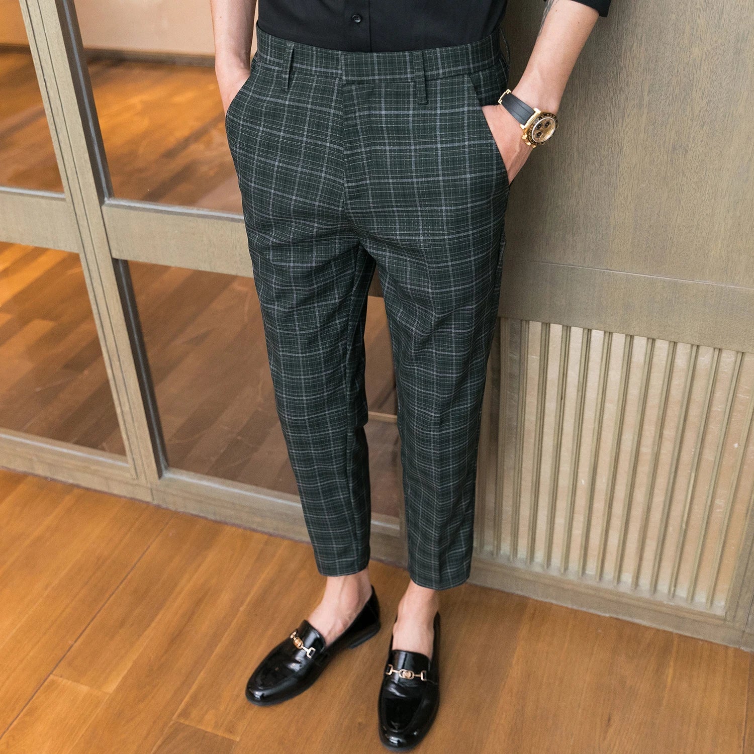 saferido Spring Business Casual Pants Korean Version Nine Pants Fashion Man Plaid Trousers Men High-Quality Social Slim Suit Pants