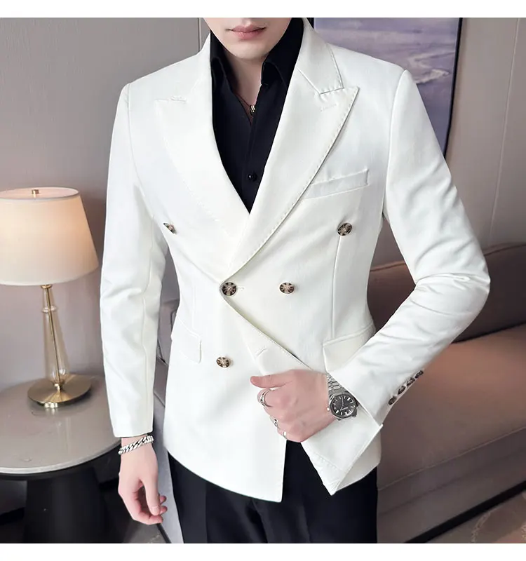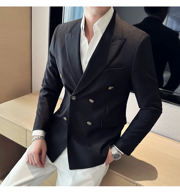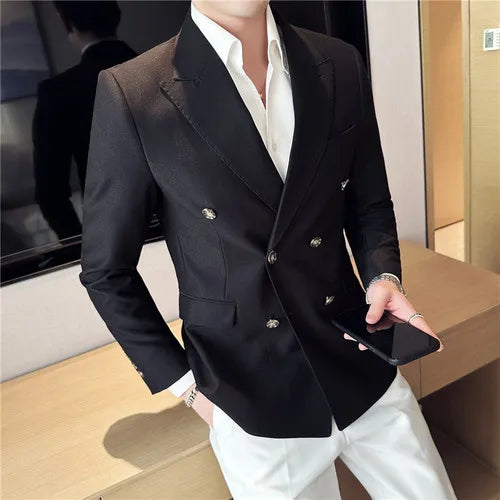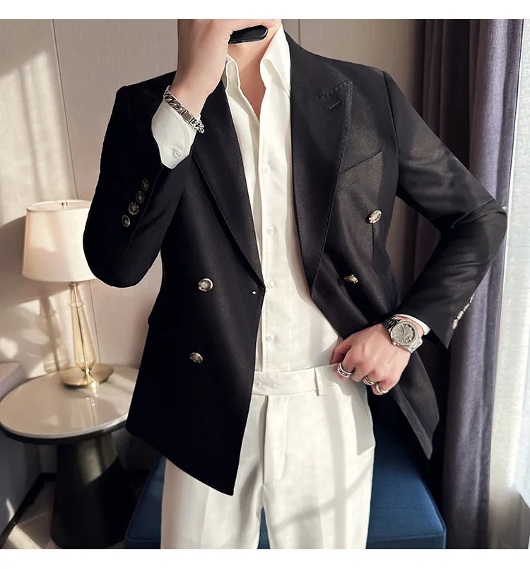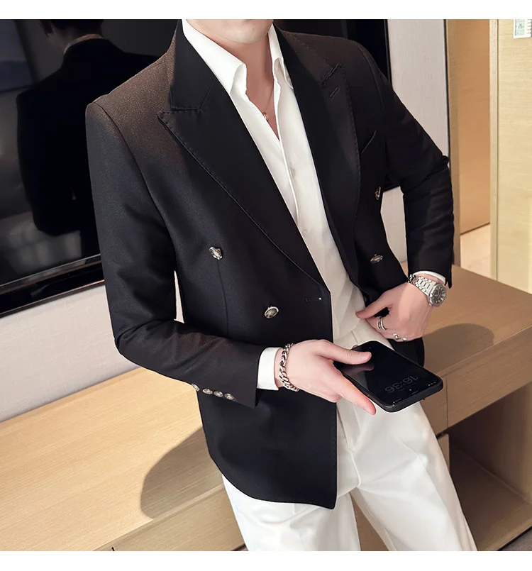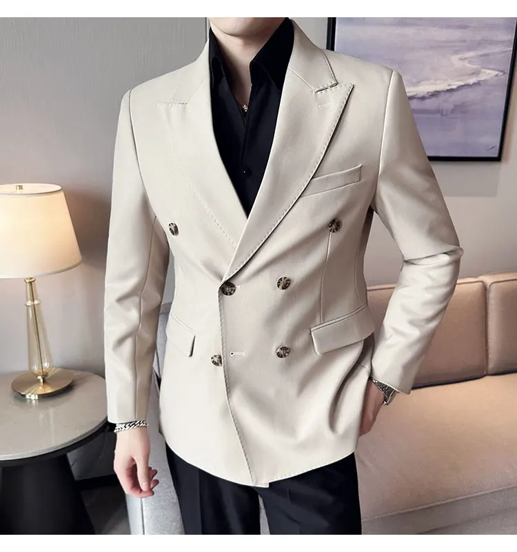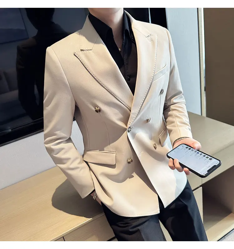 saferido Spring Business Casual Suit Blazer Coat Uniform Men Streetwear Suit Jacket Outerwear Clothing Men Double Breasted Blazer S-3XL