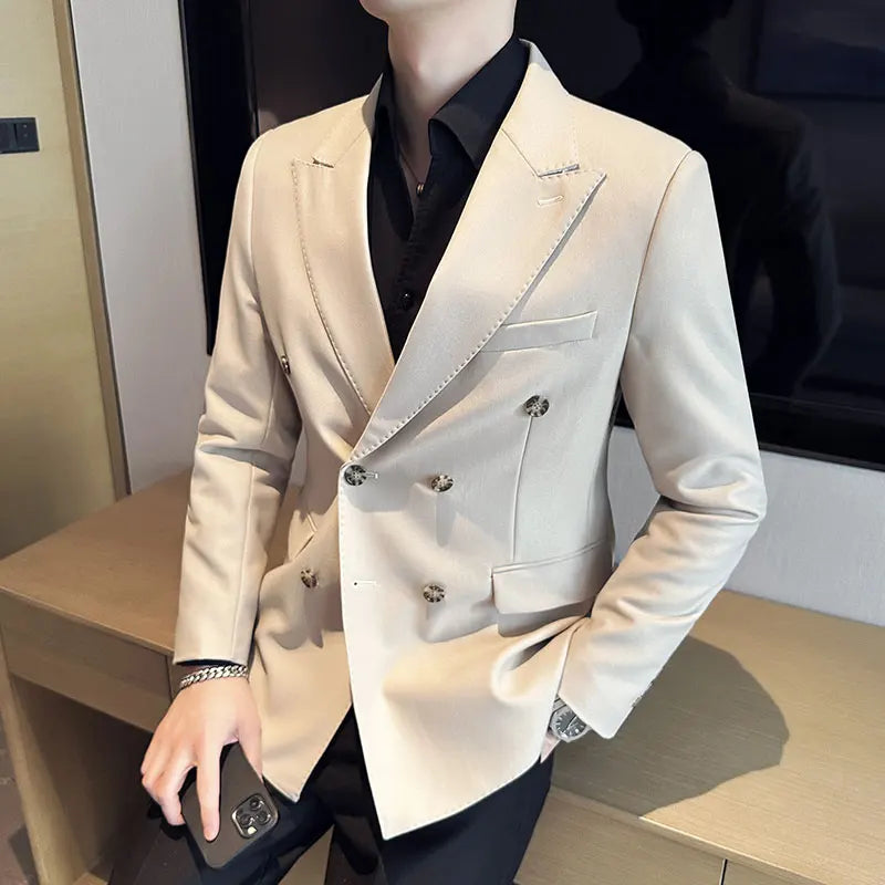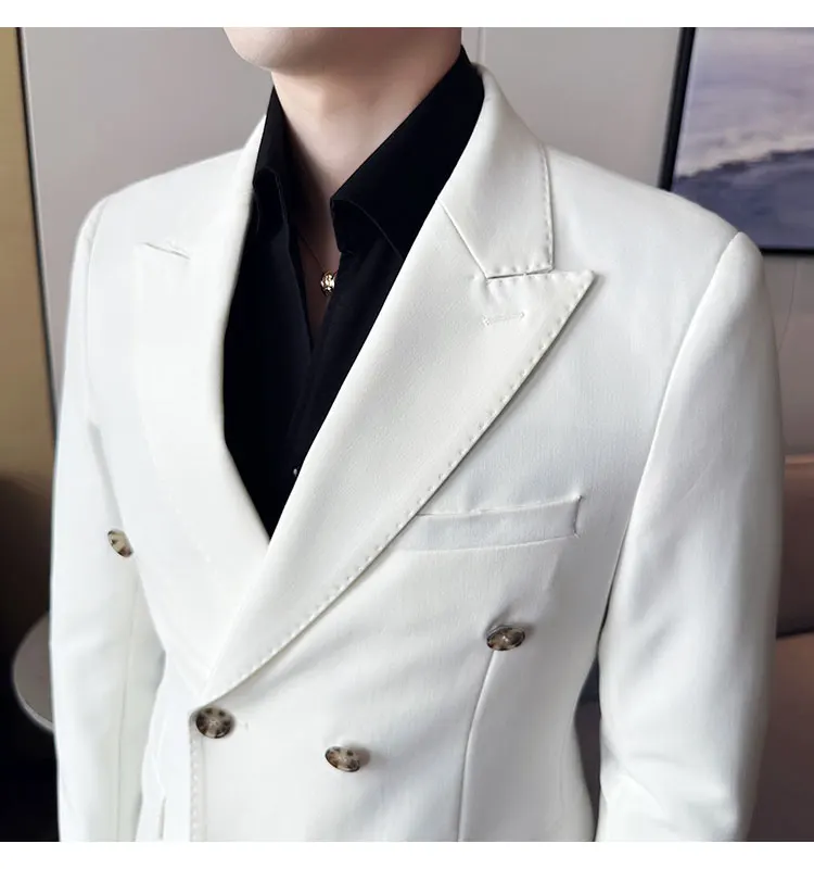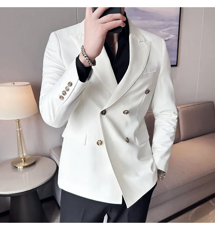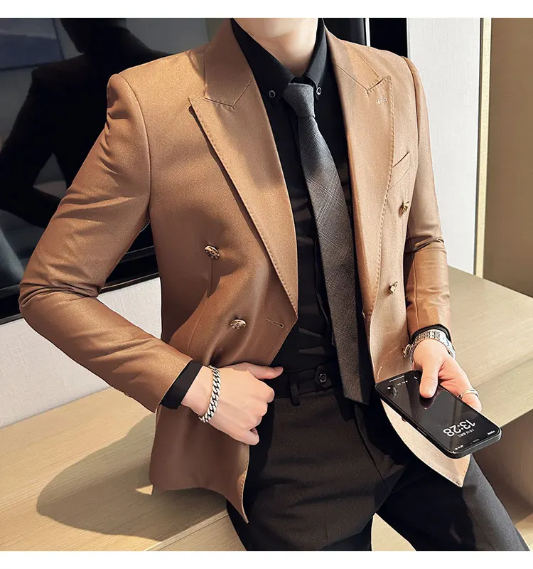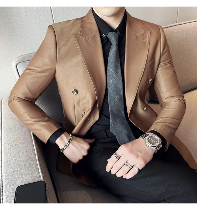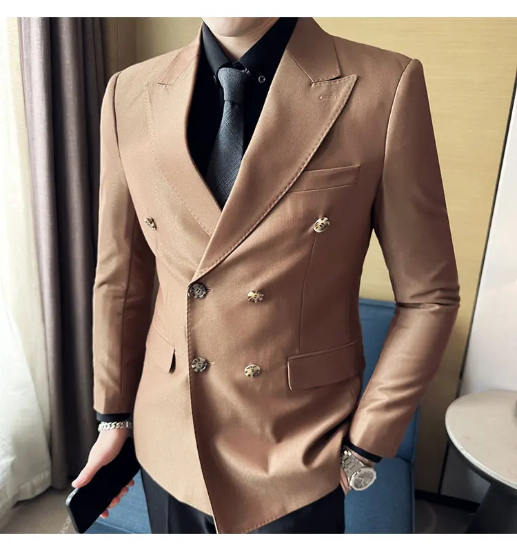 saferido Spring Business Casual Suit Blazer Coat Uniform Men Streetwear Suit Jacket Outerwear Clothing Men Double Breasted Blazer S-3XL