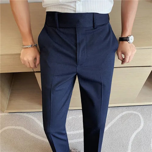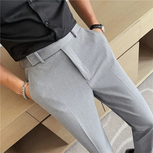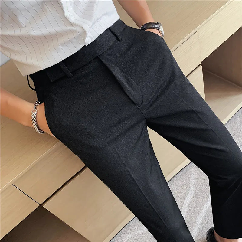 saferido Spring Men Pants Korean Slim Fit Men Casual Ankle Length Pants Streetwear Men High Quality Black Blue Dress Suit Trousers