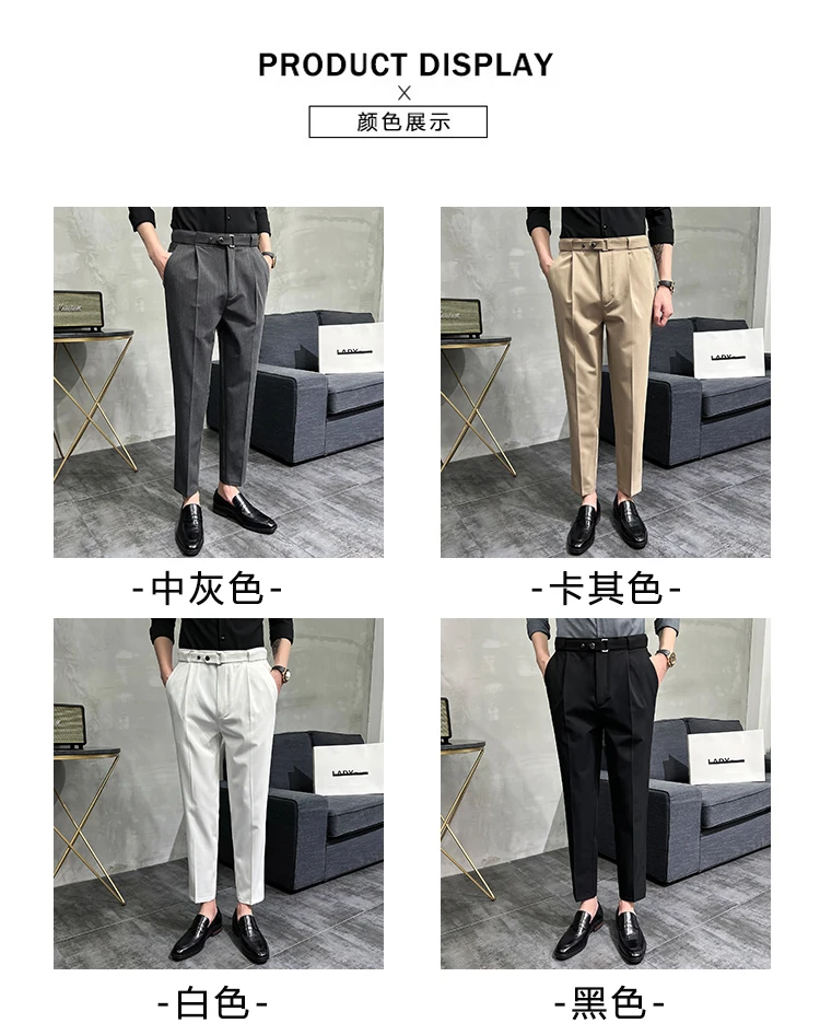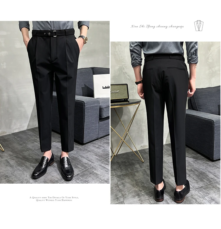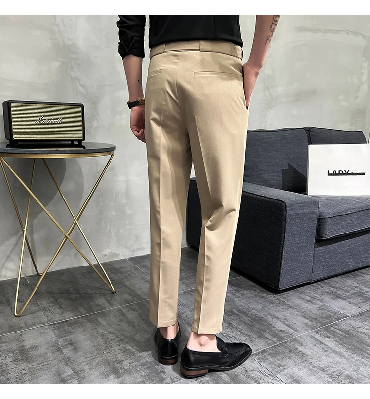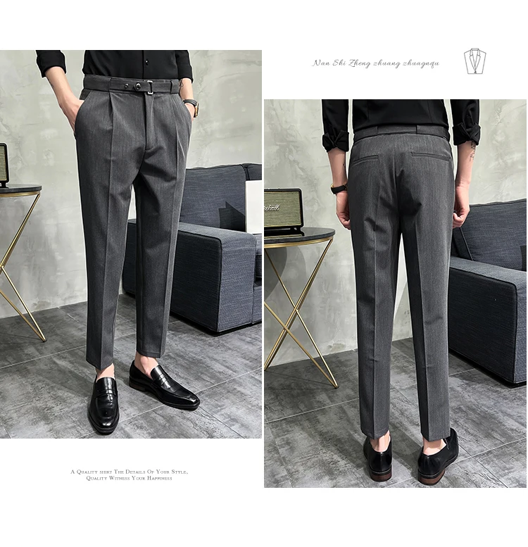 saferido Spring Men Pants Korean Slim Fit Men Casual Ankle Length Pants Streetwear Men High Quality Black Gray Dress Suit Pant Man