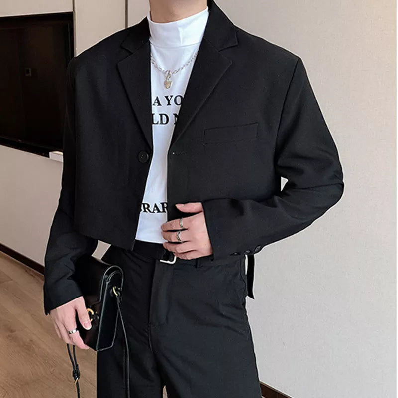 saferido Spring New Korean Version Of The Casual Short Street Style Solid Color Lapel Suit Jacket Men's Trend Design Suit
