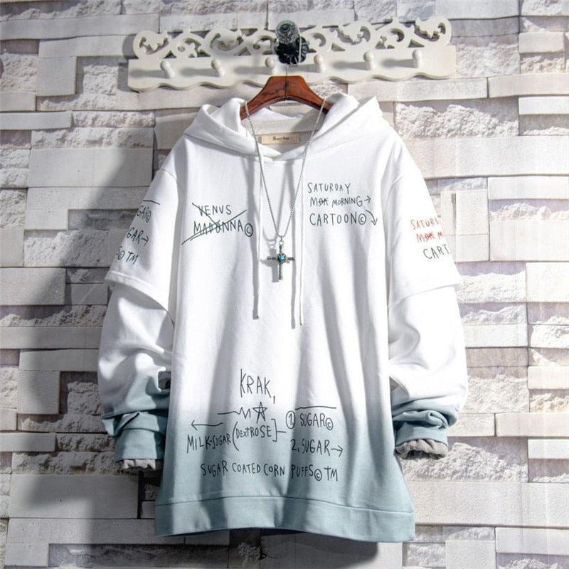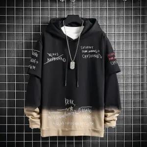 Spring Outfits Trends Men Hip Hop Patchwork Tops Streetwear Autumn Harajuku Pullover Sweatshirts Korean Black Hoody Fashion Oversized Funny Hoodie