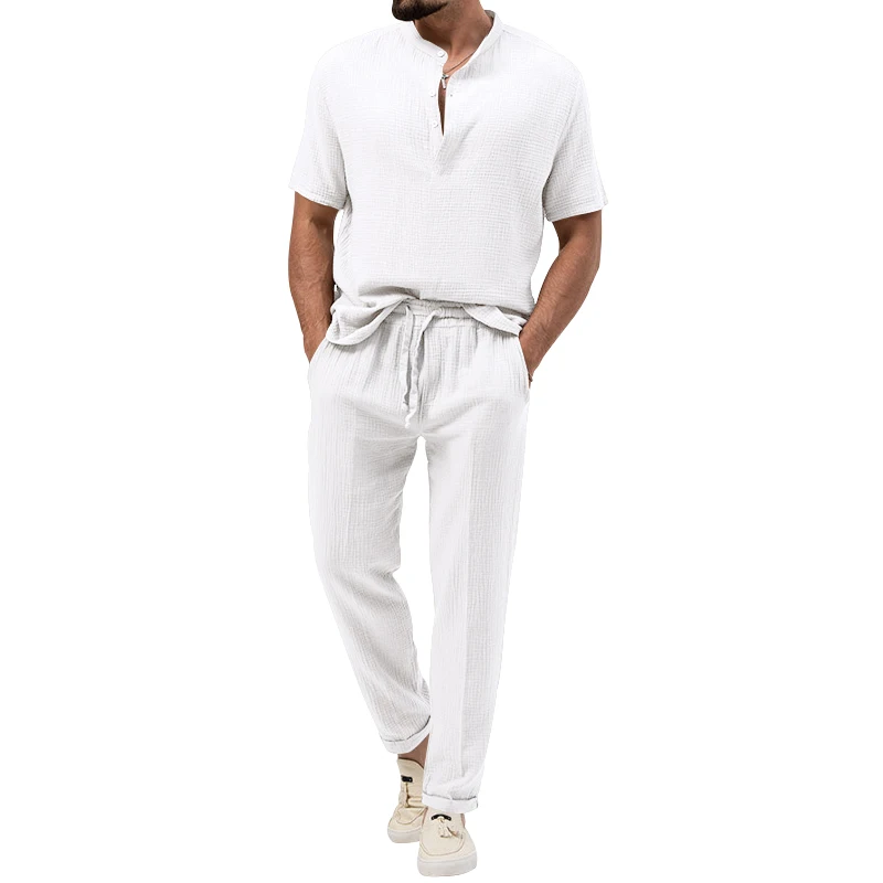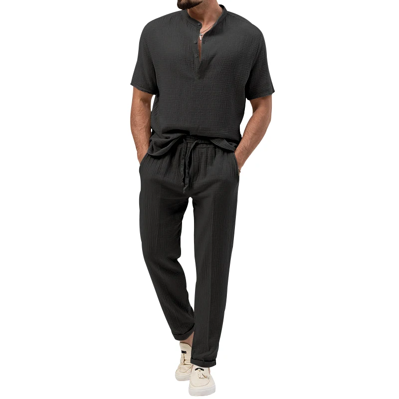 saferido Spring/Summer New Independent Men's Solid casual T-shirt Short Sleeve Shirt Long Pants Set Fashion
