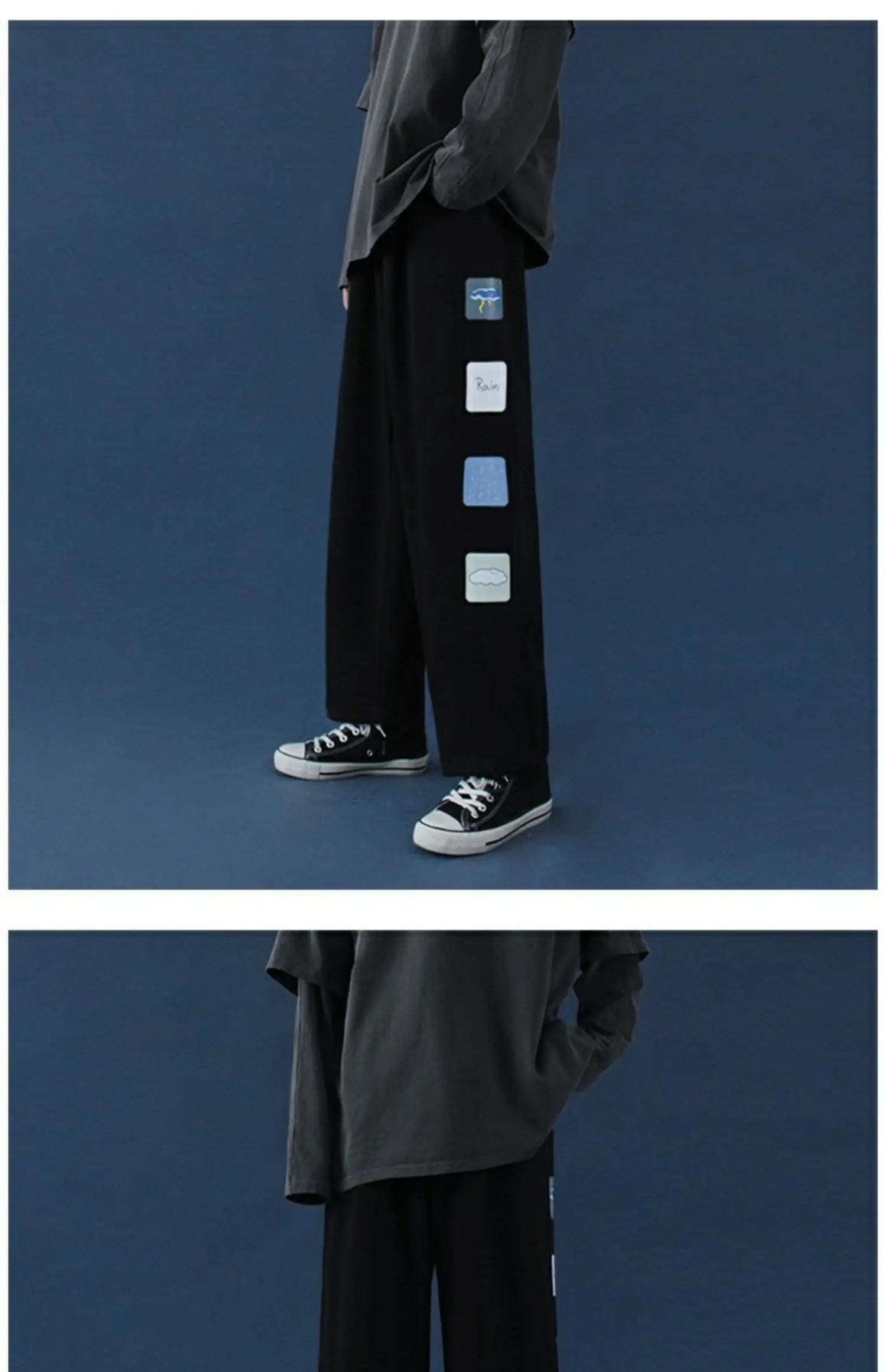 saferido Strange taste casual pants autumn and winter Korean students' slim and versatile loose straight HIP HOP wide leg sports pants