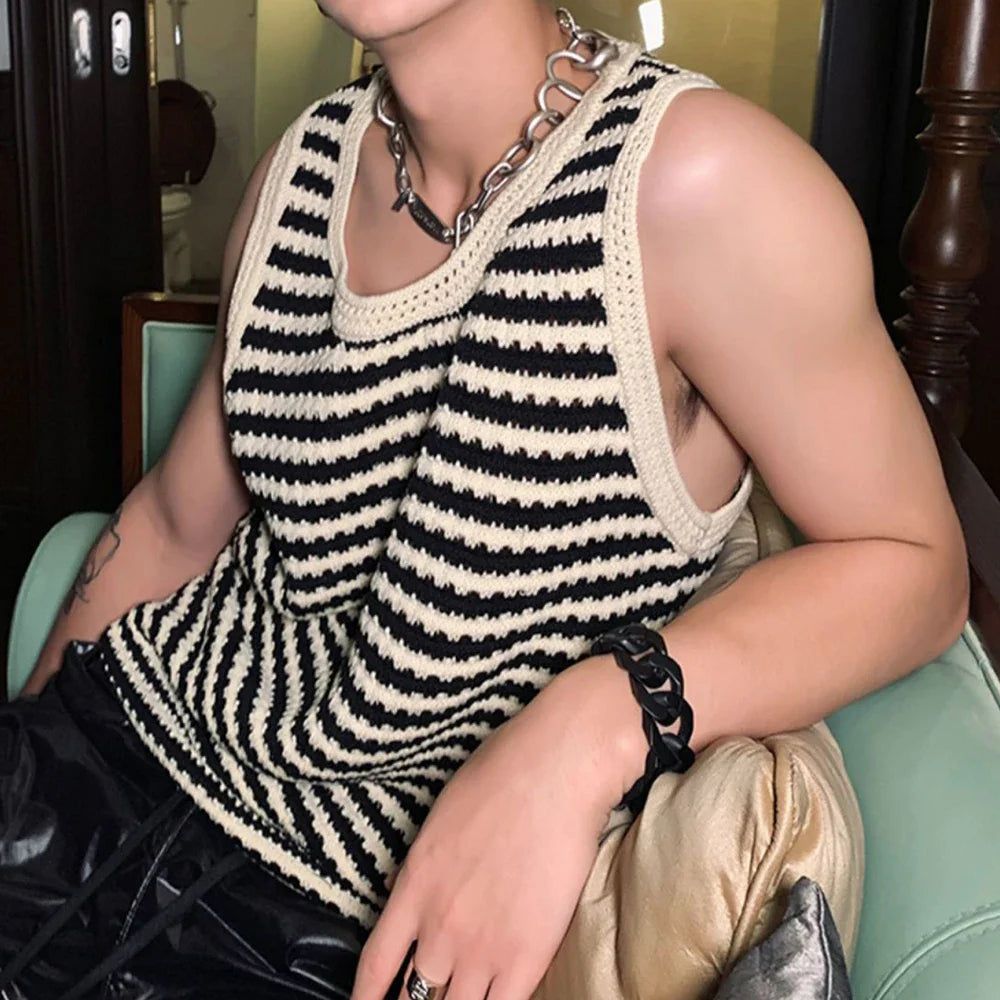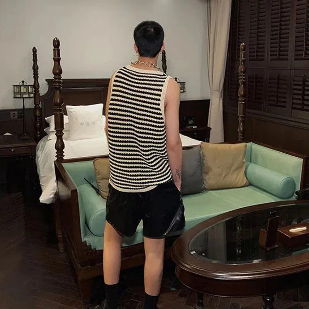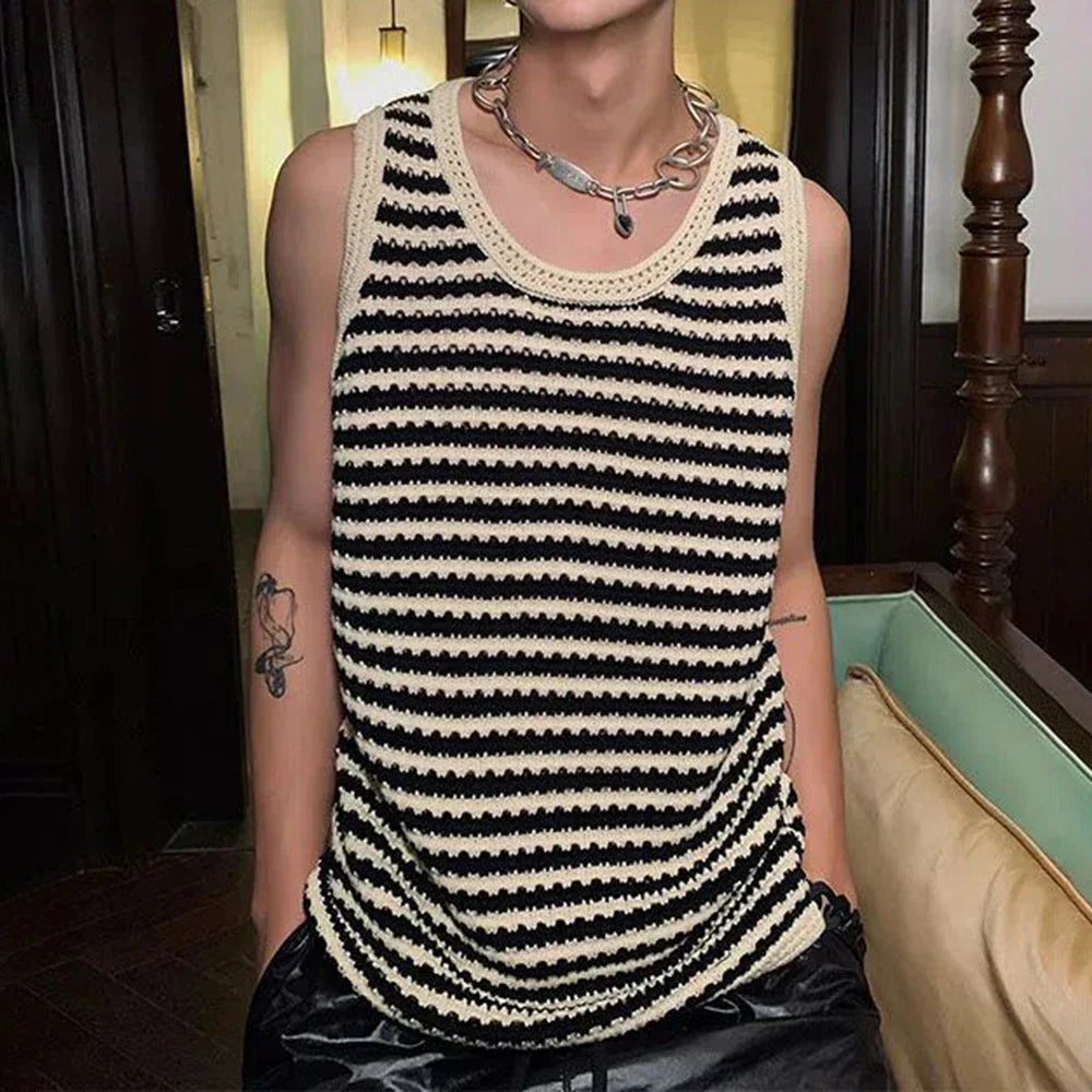 saferido Striped Knitted Summer Tanks Tops Men's O-Neck Korean Knitwear Shirts Sleeveless Streetwear Loose Top Vintage Cropped Sexy