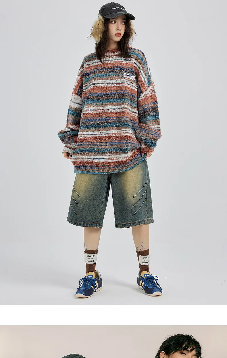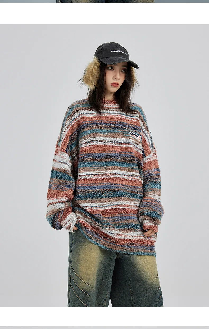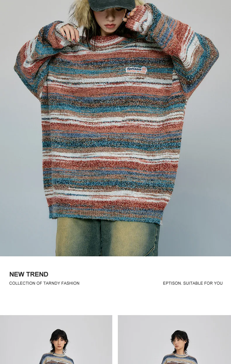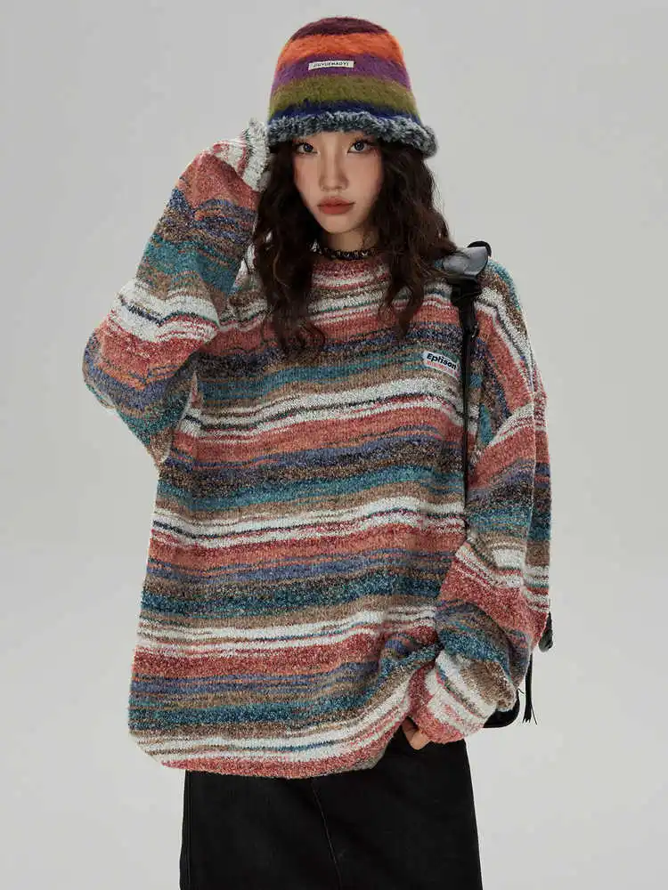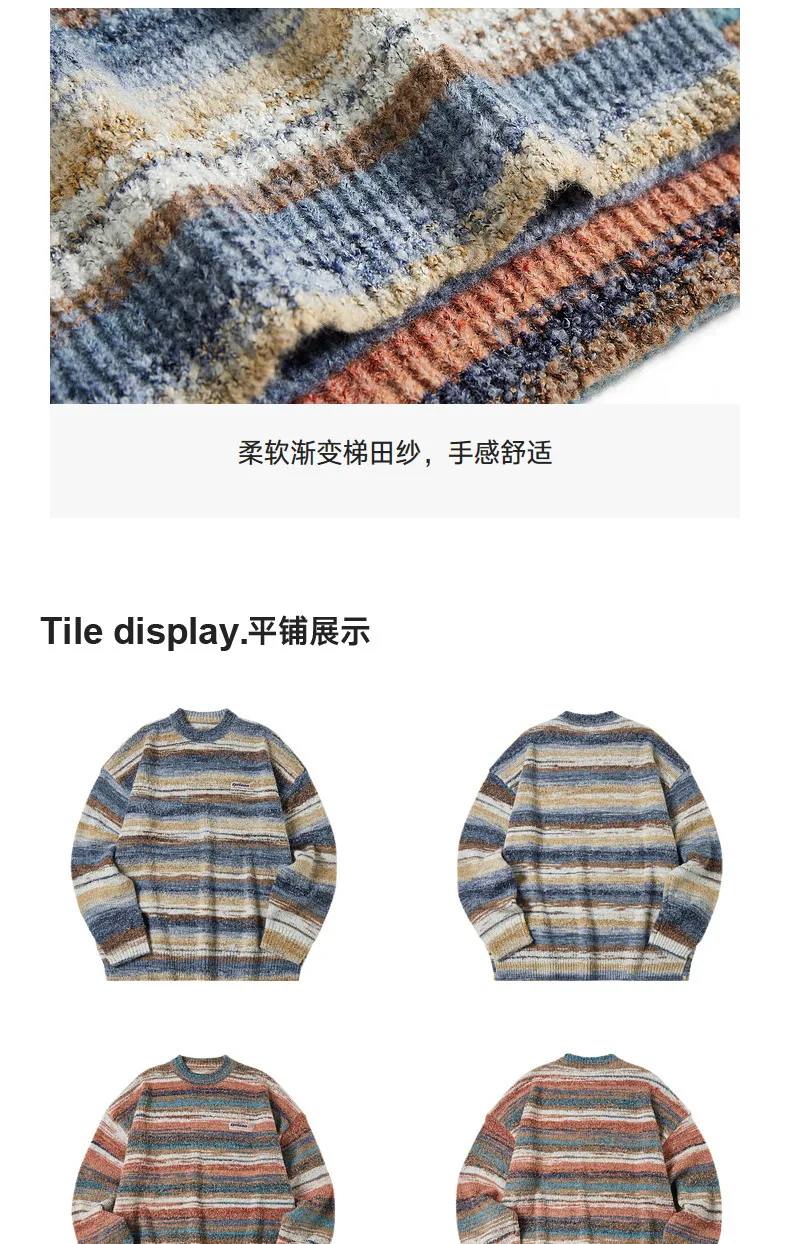 saferido Striped Knitted Sweater Coat Men Japanese Y2K Oversize Casual Autumn Winter Loose O-neck Pullovers for Man Streetwear