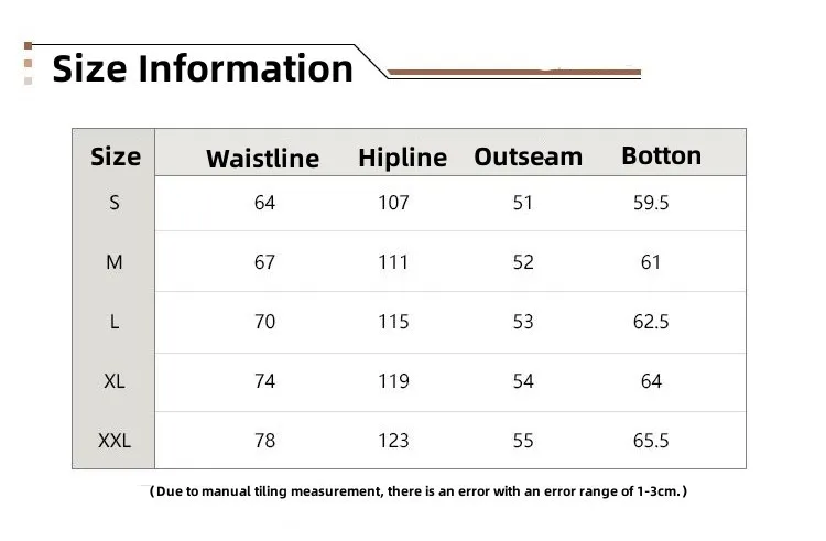 This size chart is for your reference only. Please allow an error of 1-3 cm for manual measurement.