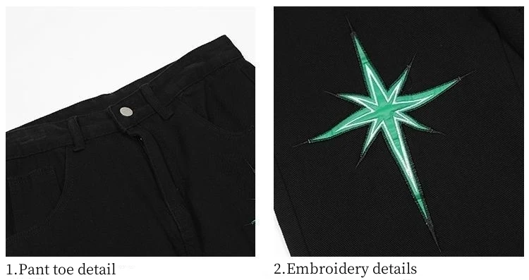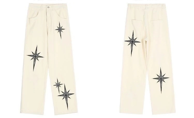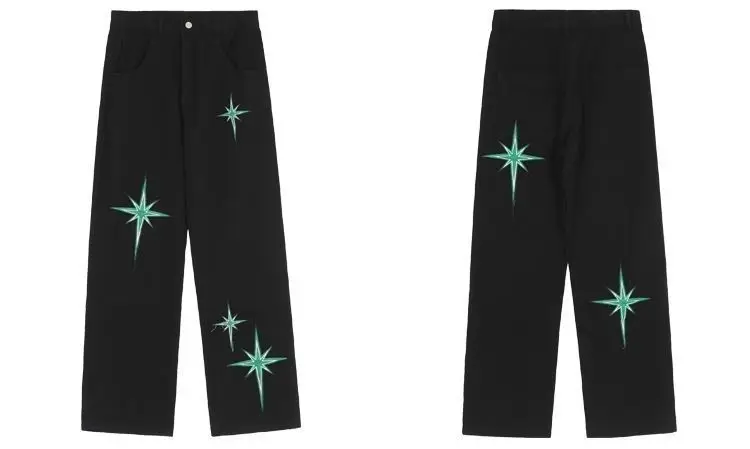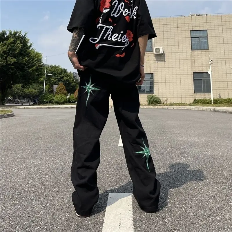 saferido Summer American Street Hip Hop Y2K Embroidered Loose Fit Straight Leg Jeans Men's High Street Fashion Versatile Pants