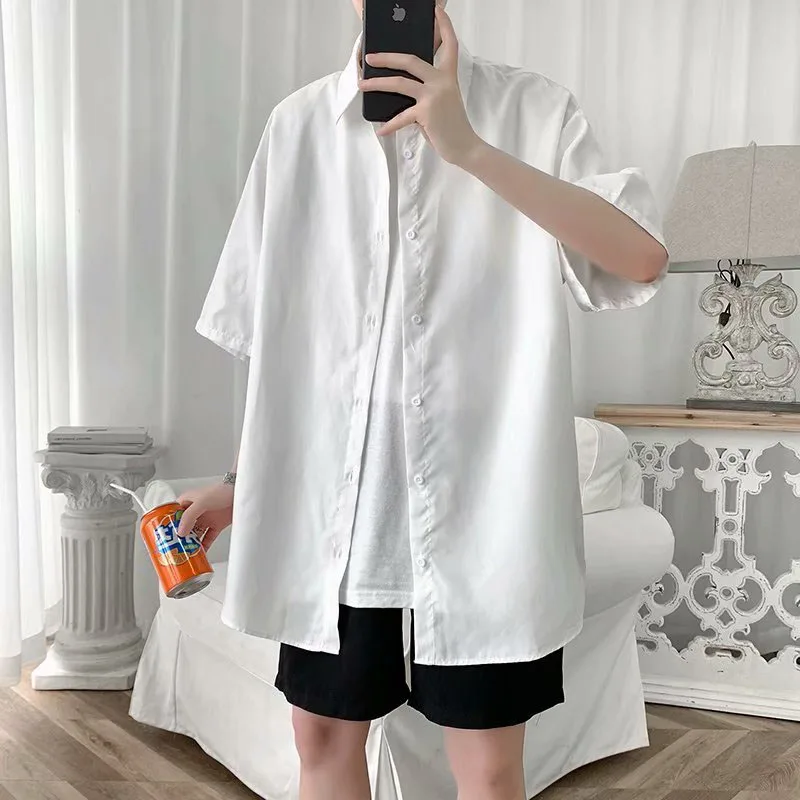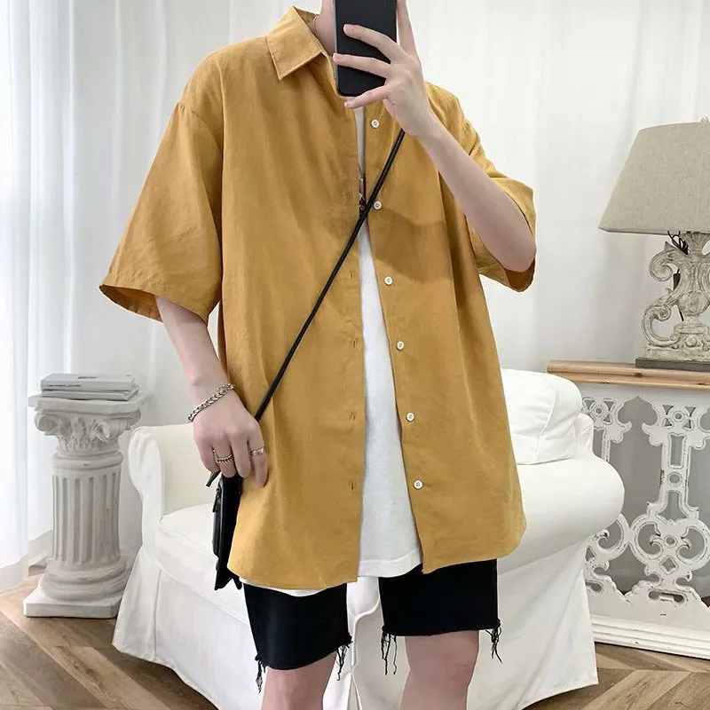 saferido Summer HIP HOP loose short sleeve shirt Korean solid color 5 / 5 sleeve shirt student fashionable and handsome inch coat shirts