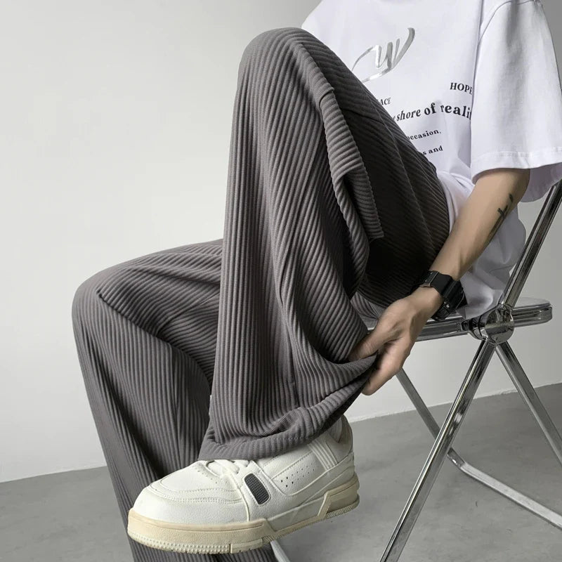 saferido Summer Ice Silk Pants Men Fashion Casual Pleated Pants Men Japanese Streetwear Loose Wide Leg Pants Mens Baggy Trousers M-3XL