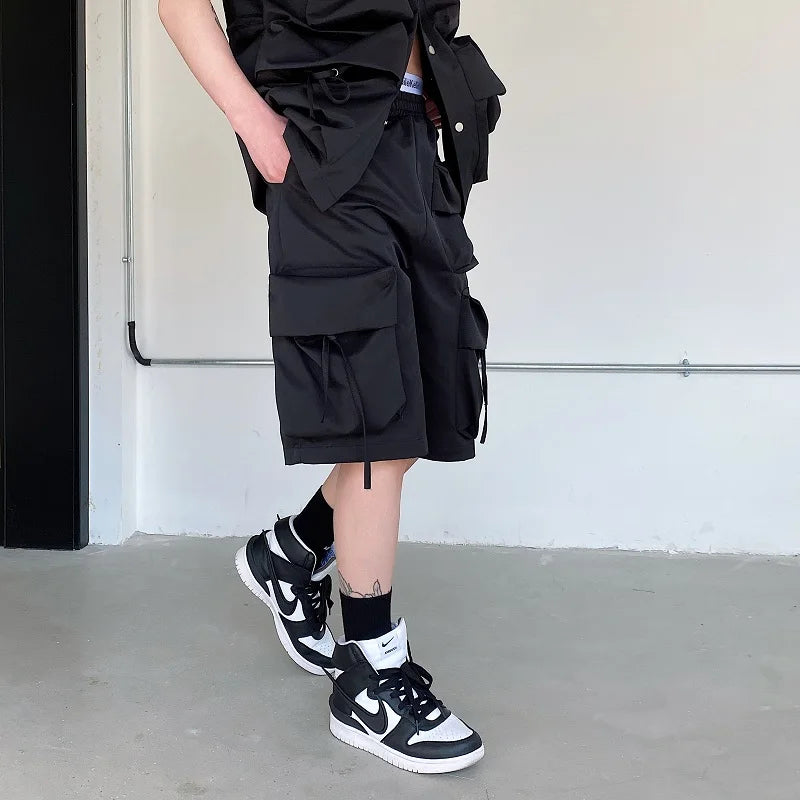 saferido Summer Korean style personality patch pocket cargo Shorts Men casual loose black work shorts size M-XL