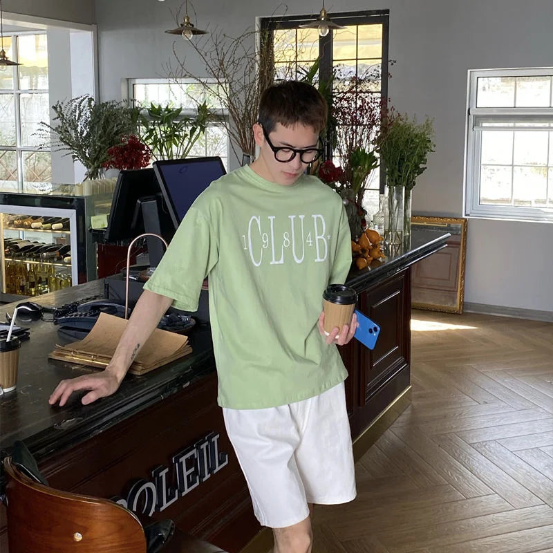 saferido Summer Men's Korean Style Casual Printed T-shirts Short Sleeve Round Neck T Shirts Green/white Color Top Clothes Tshirts