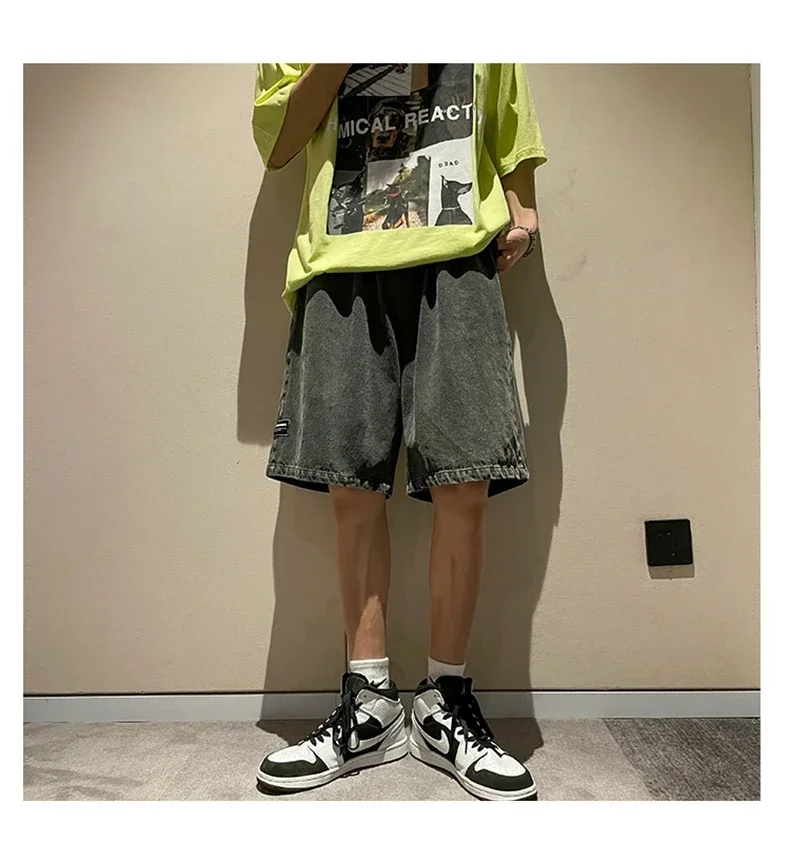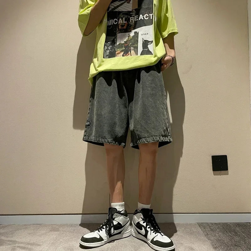 saferido Summer New Men's Loose Denim Shorts Blue Black Fashion Wide Legs Casual Oversized Baggy Beach Short Jeans Male Bermuda