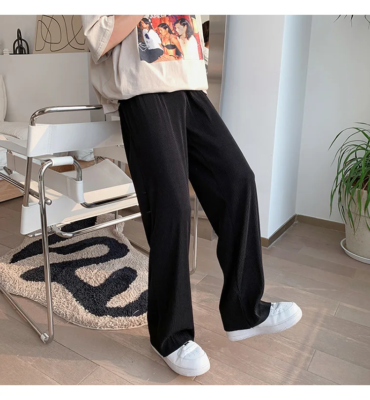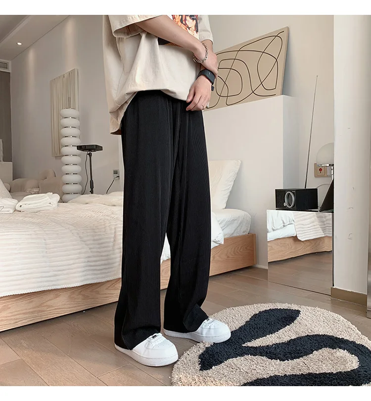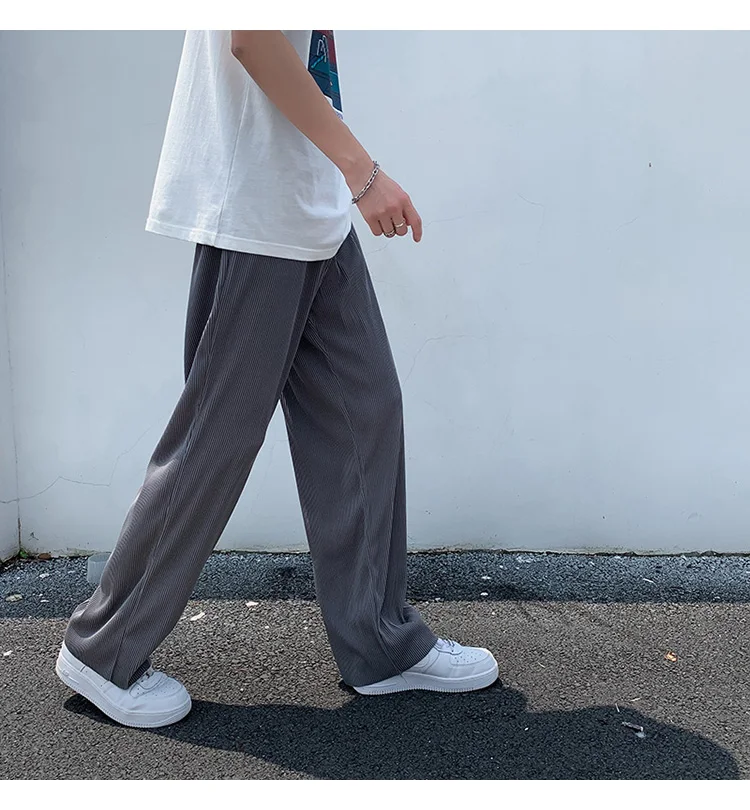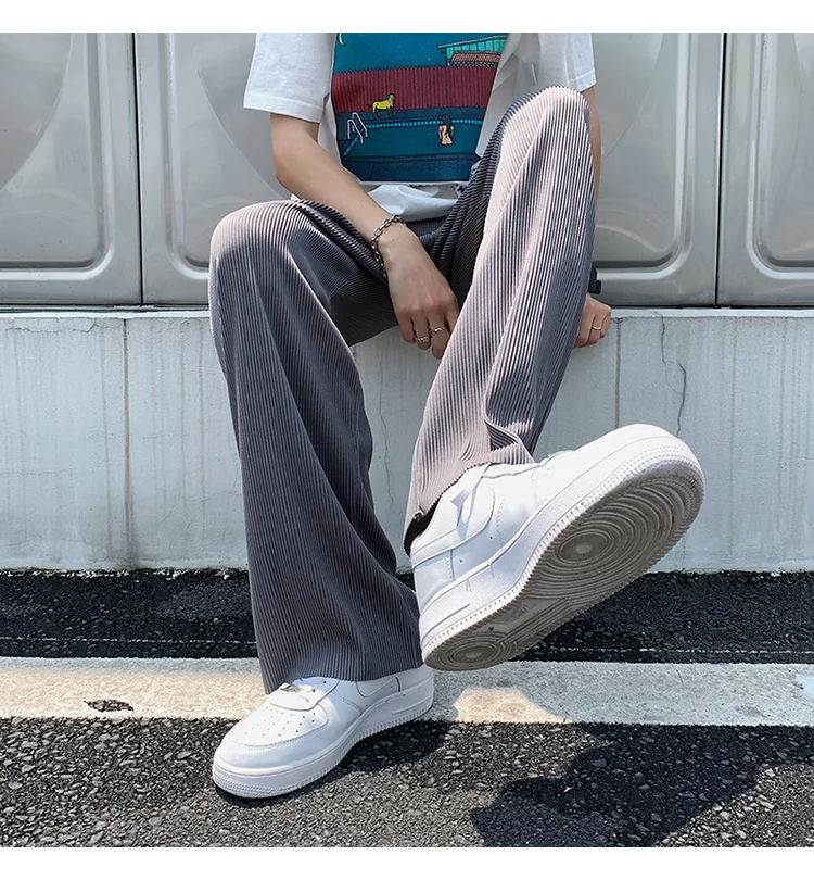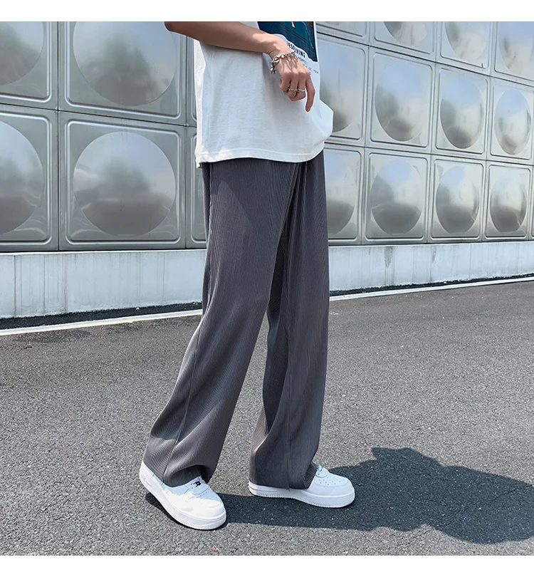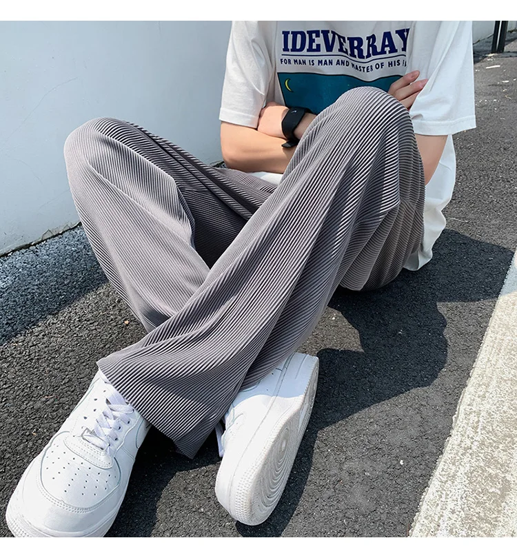 saferido Summer Pleated Pants Men Oversized Gray Black Casual Trousers Men Japanese Streetwear Loose Wide Leg Pants Mens Ice Silk Pants
