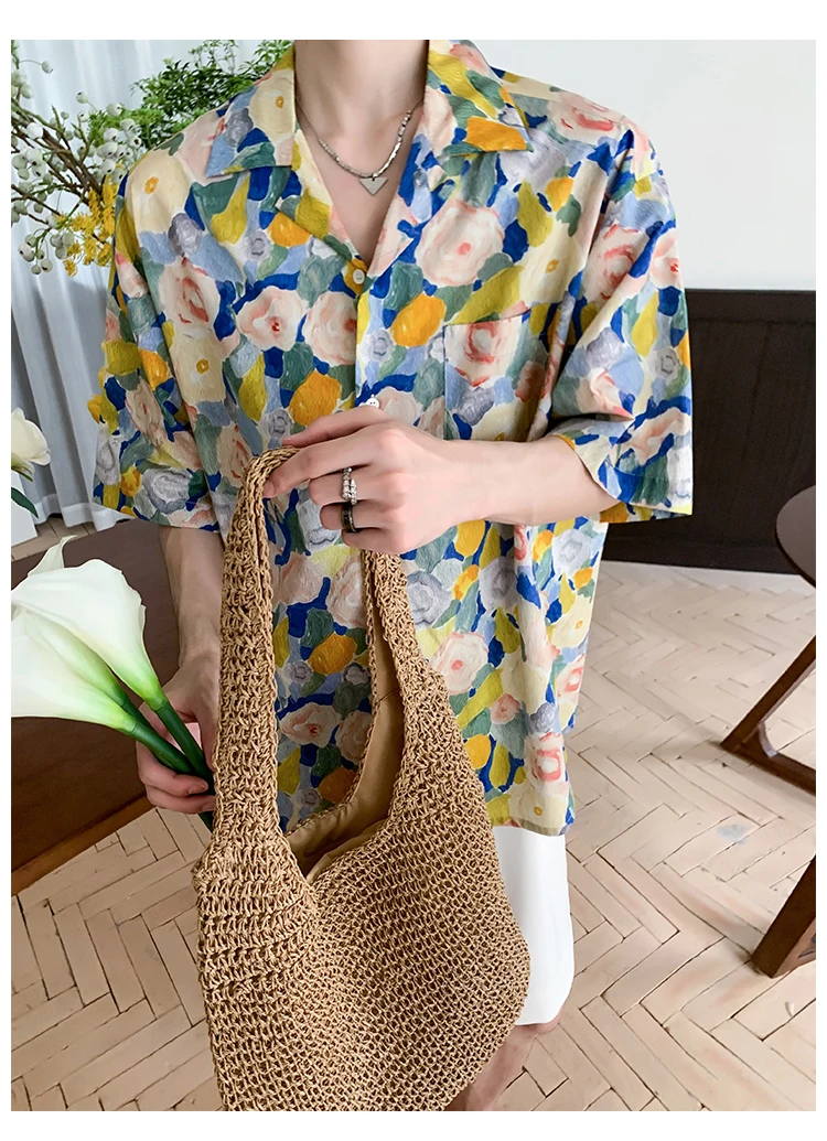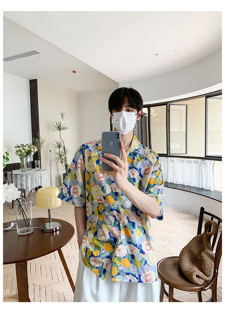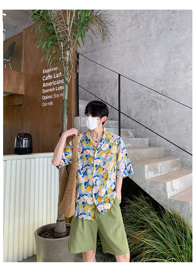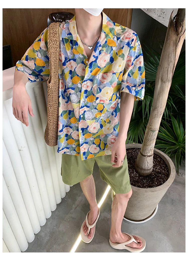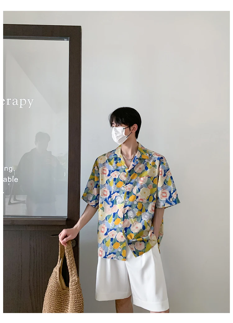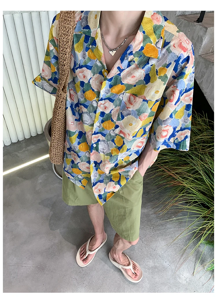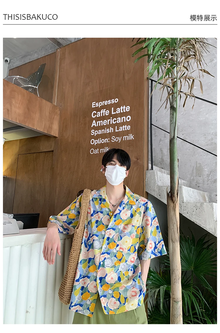 saferido Summer Shirts Men Painting Ins Chic Advanced Breathable Casual Short Sleeve High Street Korean Beach Style Loose Cozy Vocation