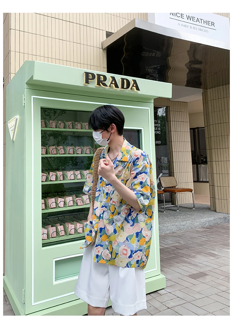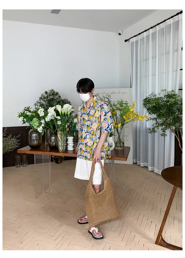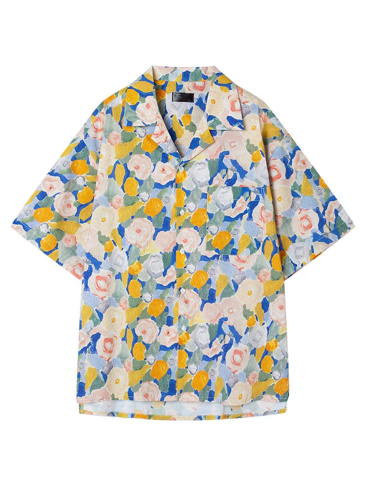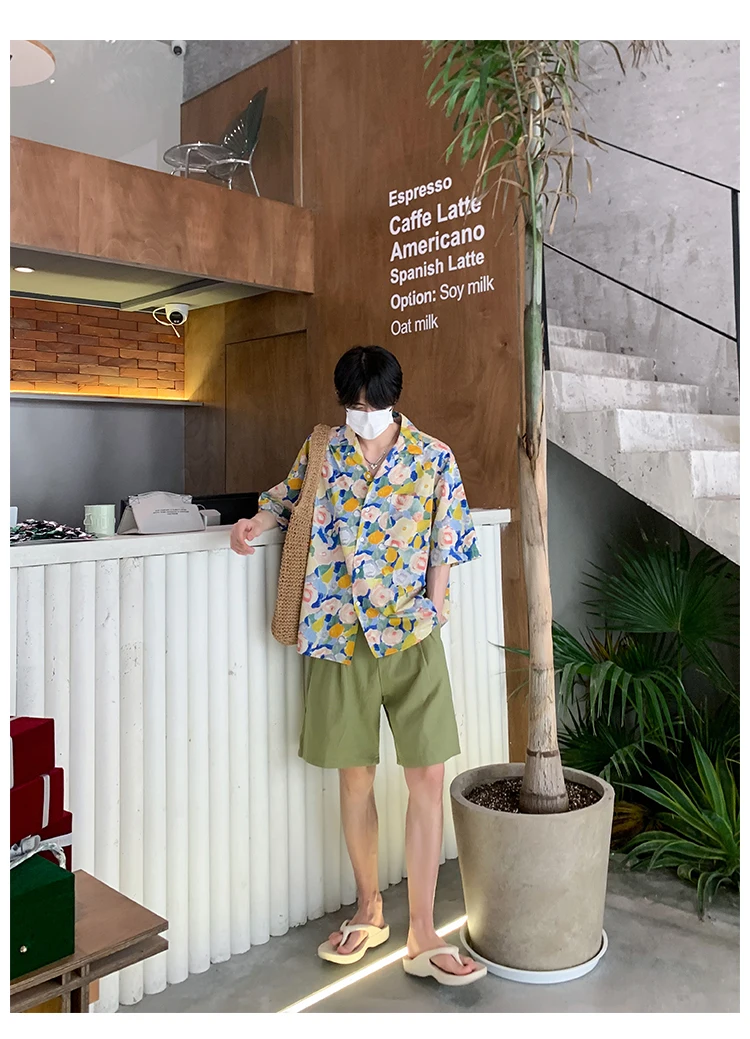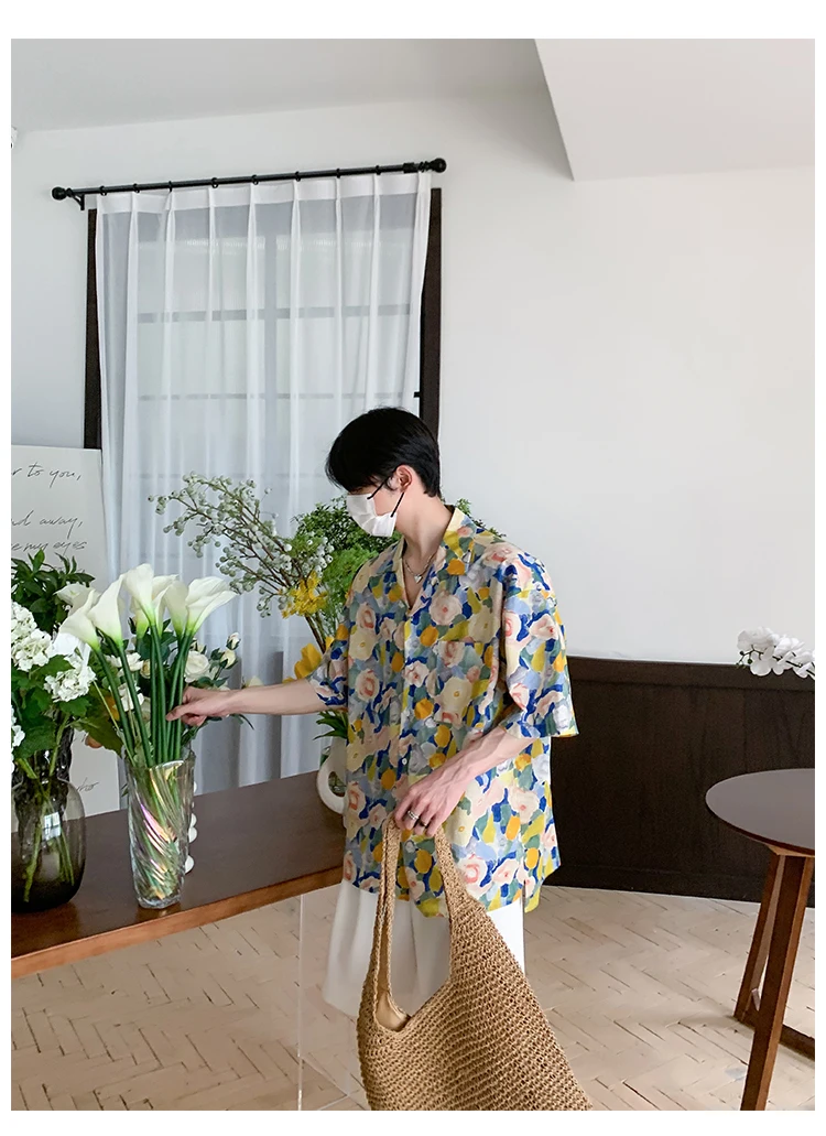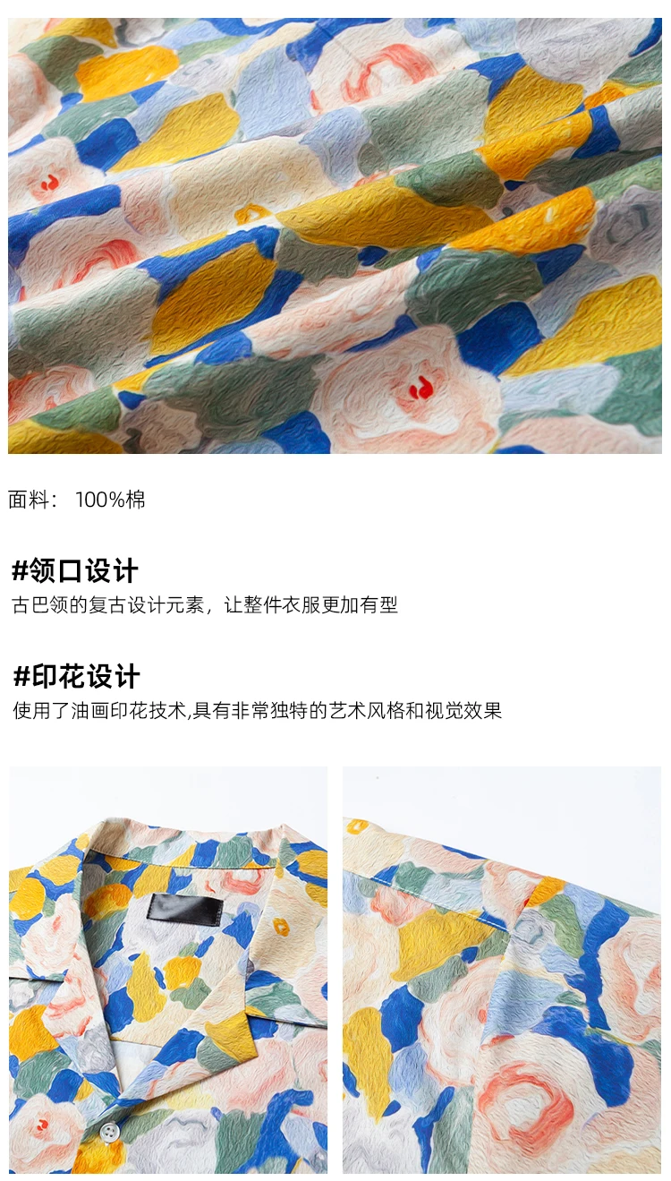 saferido Summer Shirts Men Painting Ins Chic Advanced Breathable Casual Short Sleeve High Street Korean Beach Style Loose Cozy Vocation