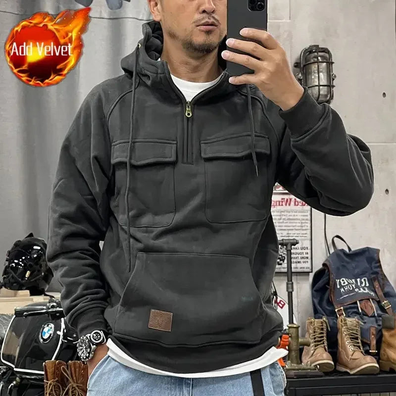 saferido Sweatshirt for Men Black Half Zip Hoodies New Rock Male Hooded Clothes Simple Y2k Vintage Free Shipping Offers Low Price Overfit