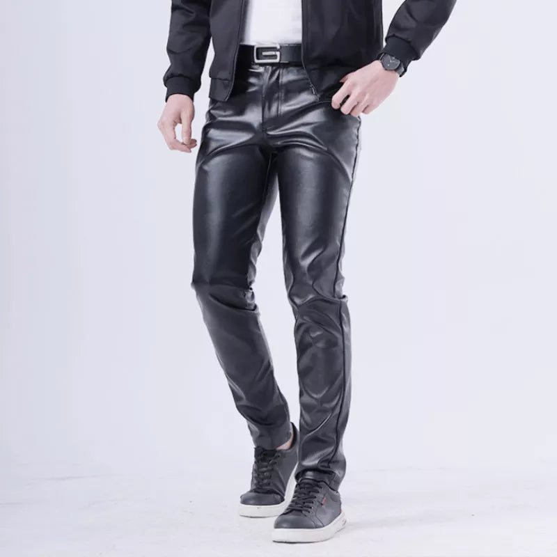 saferido Thin Leather Pants Men's Moto Pants Spring Summer Fashion Color Elastic Slim Fit PU Trousers Windproof Waterproof Man Bottoms