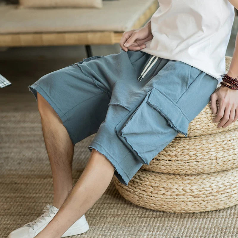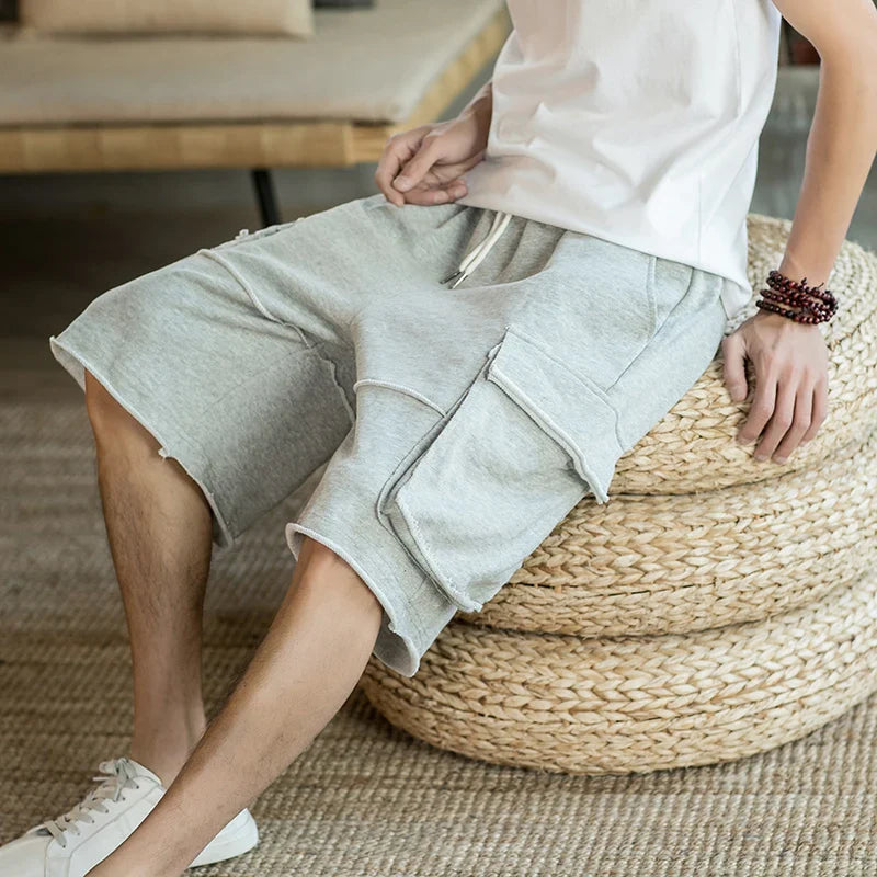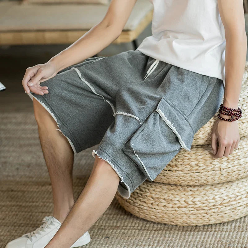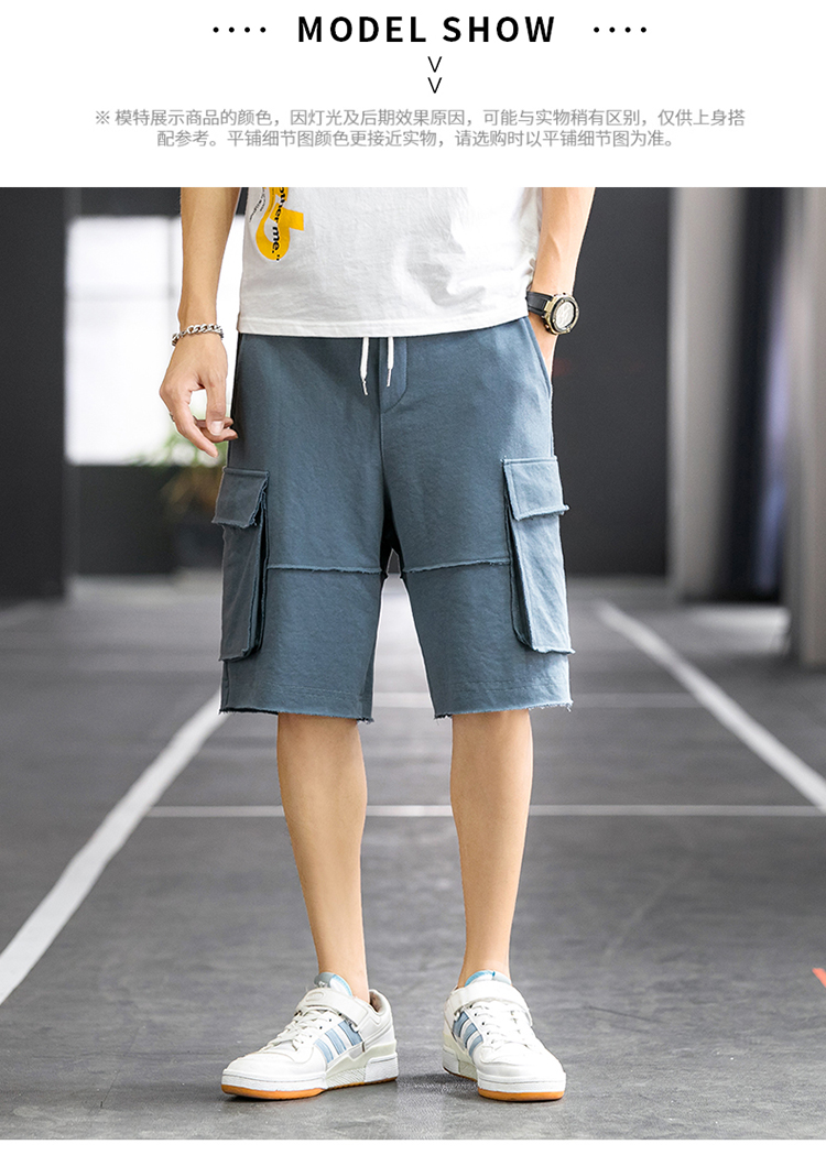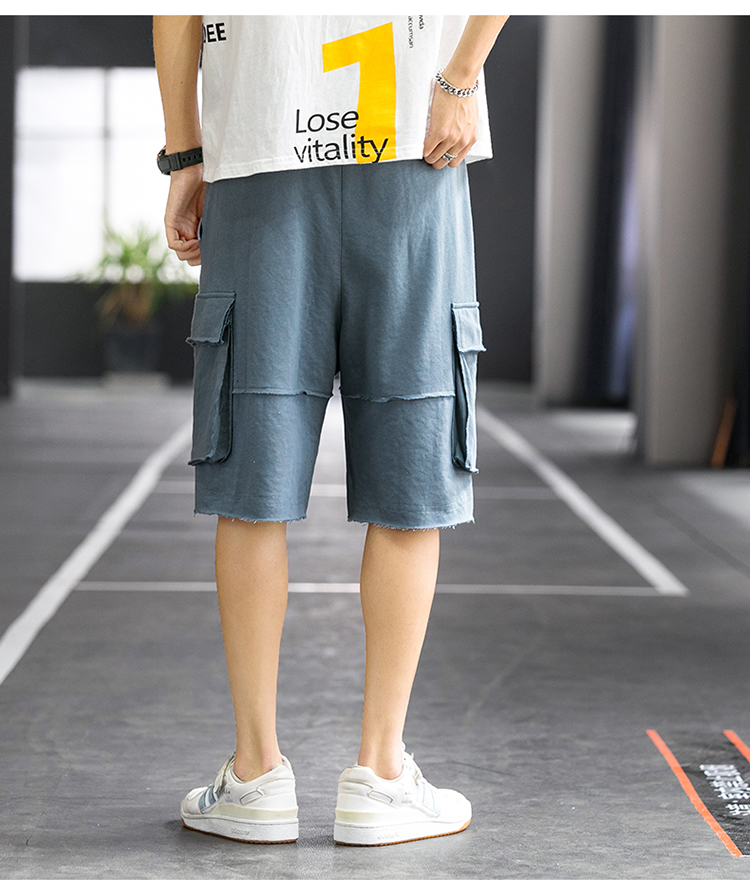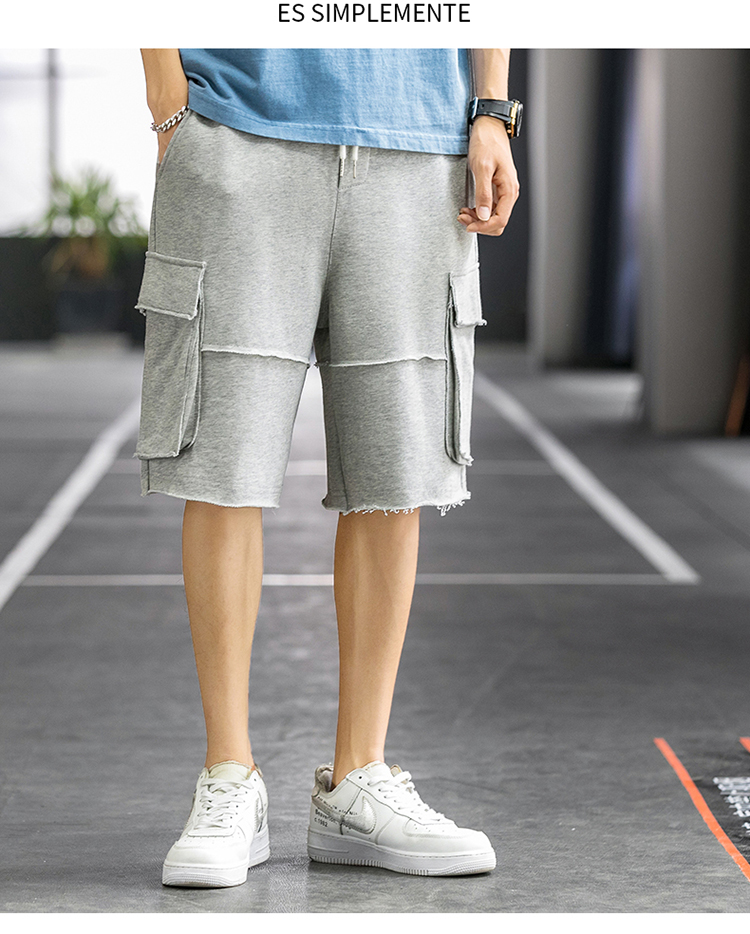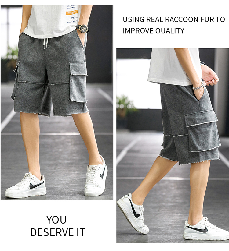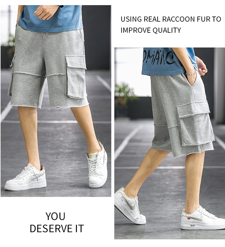 saferido Trend Summer Beach Five-point Pants Oversize Stitching Pocket Casual Shorts Men Loose Straight Sports Sweatpants Thin Outer Wear