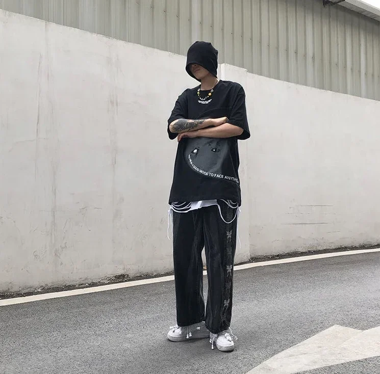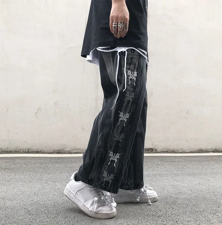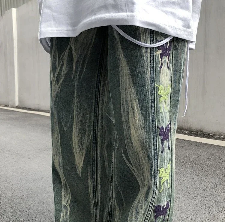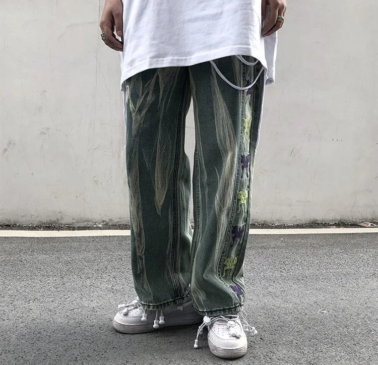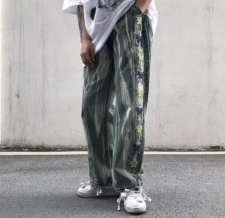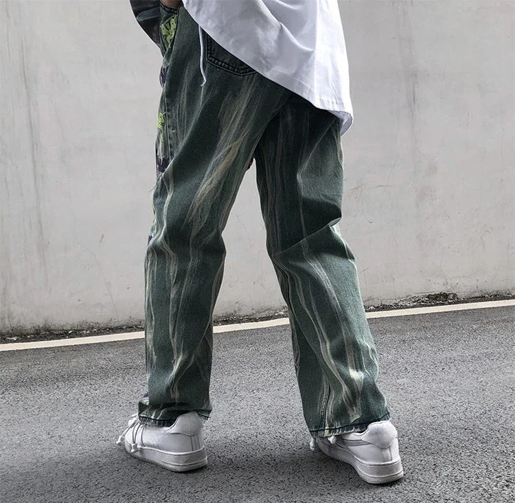 saferido Trousers Hip Hop Straight Men's Jeans Tie Dye Graphic Man Cowboy Pants Y2k Streetwear Baggy 2024 Korean Autumn Harajuku Summer