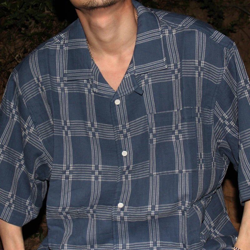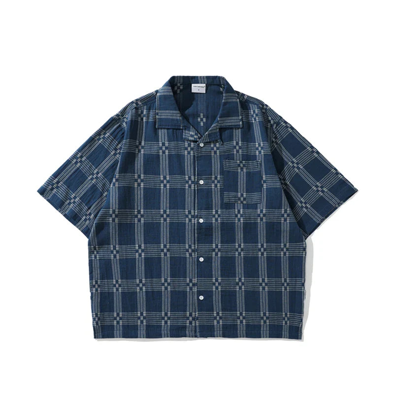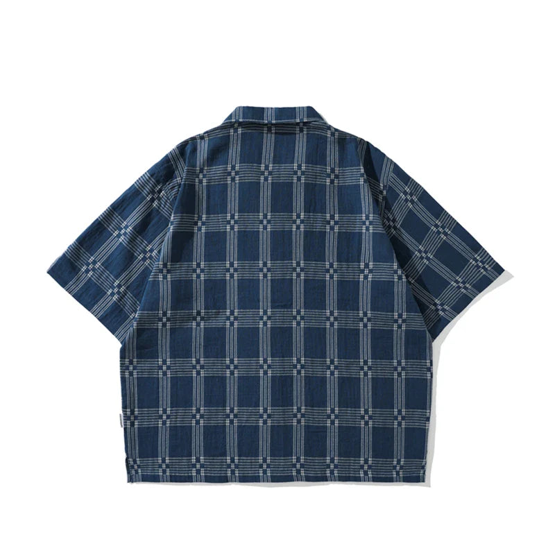 saferido Vintage Plaid Shirts Men American Simple Single Button Designed All-match Business Office Short Sleeve Tops Korean Fashion Chic