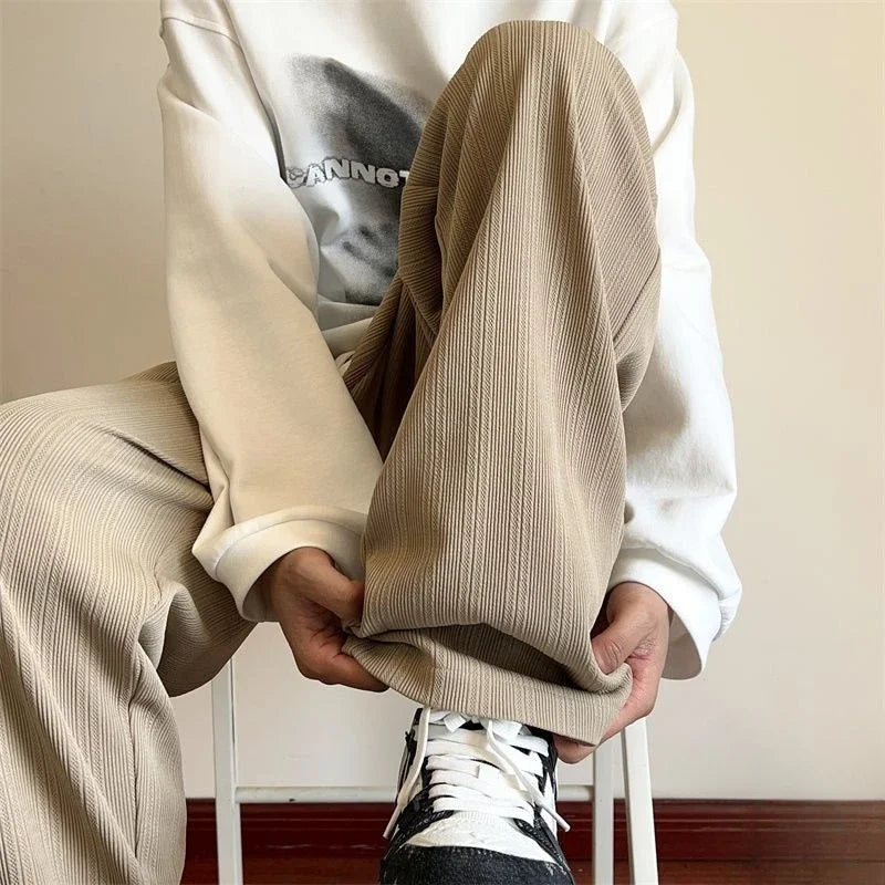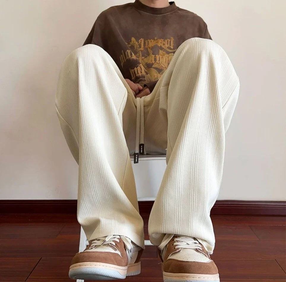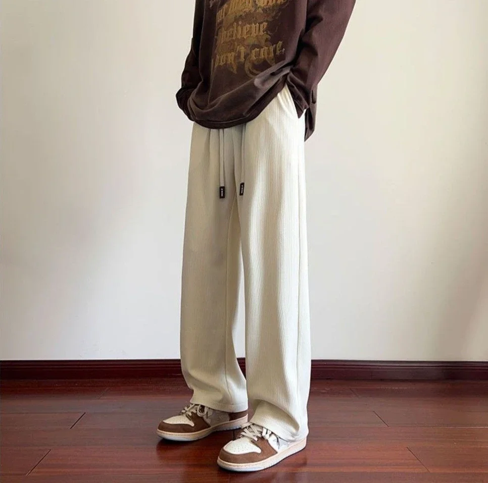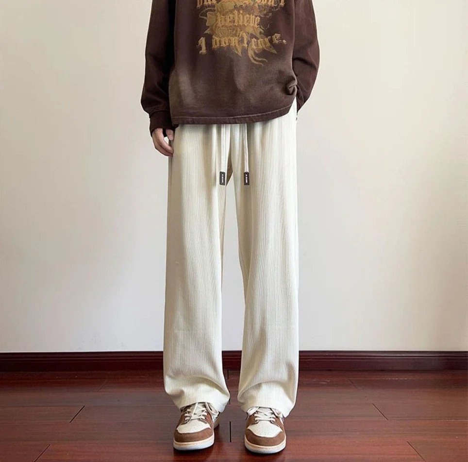saferido Wide Leg Goth Draped Summer Male Sports Pants Trousers Thin Plain Straight Men's Sweatpants Training Slacks Harajuku Flated Gym