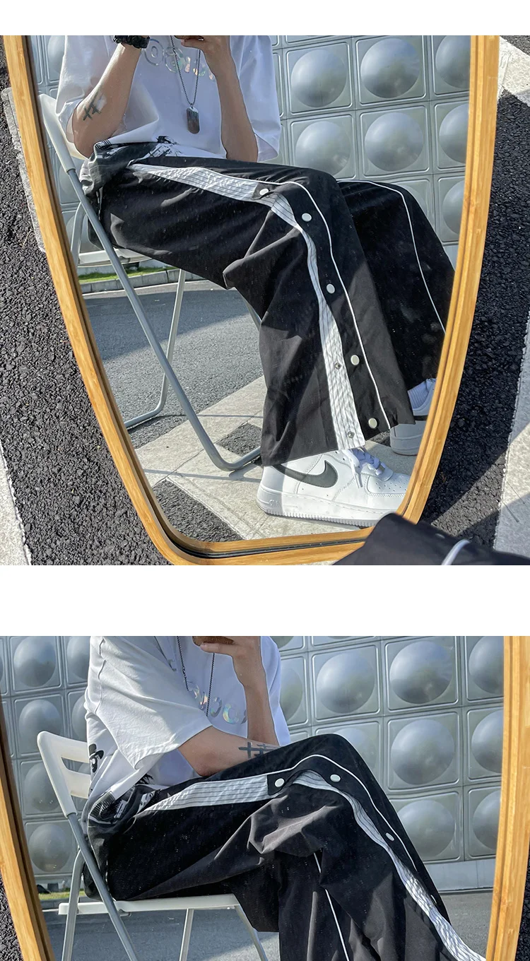 saferido Wide leg pants men's couple korean loose straight tube drop summer breasted pants streetwear joggers sport pantalon homme Sale