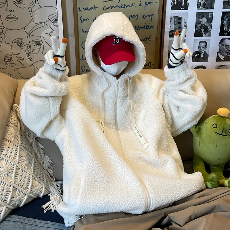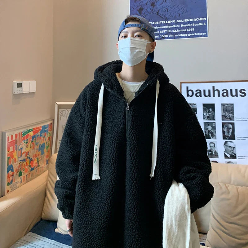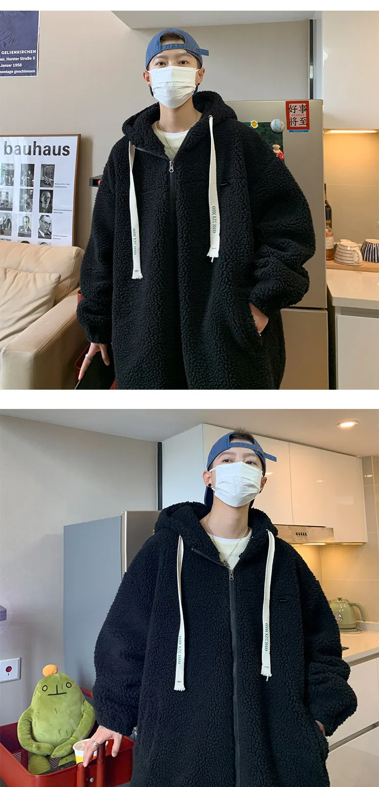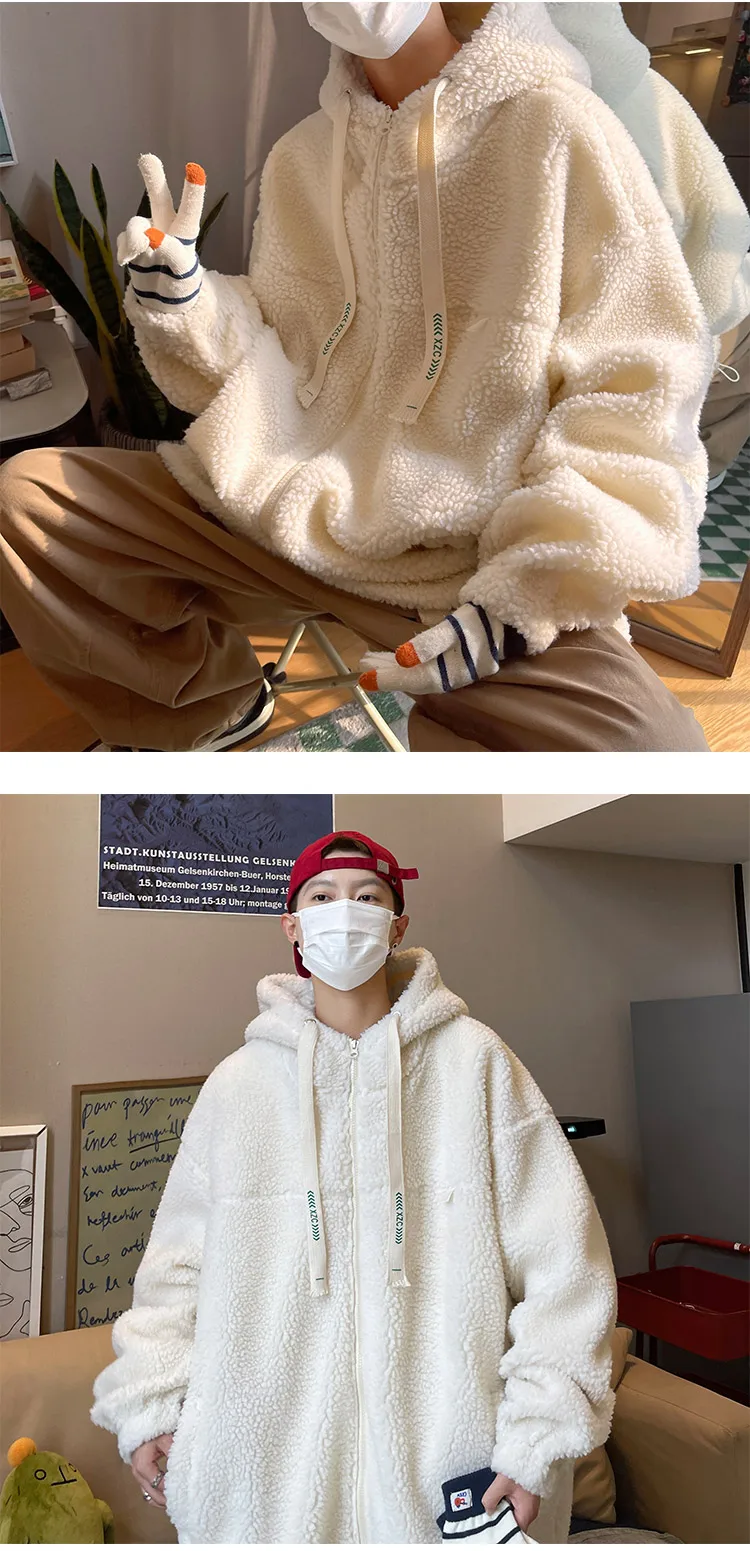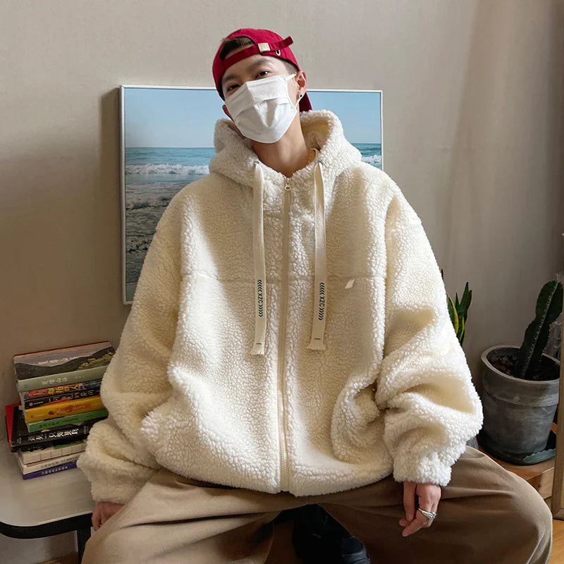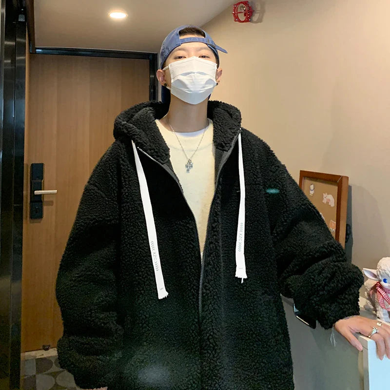 saferido Winter Jacket Men Warm Fashion Retro Thickened Hooded Jacket Men Korean Clothes Loose Short Coat Mens Thick Lamb Wool Jackets