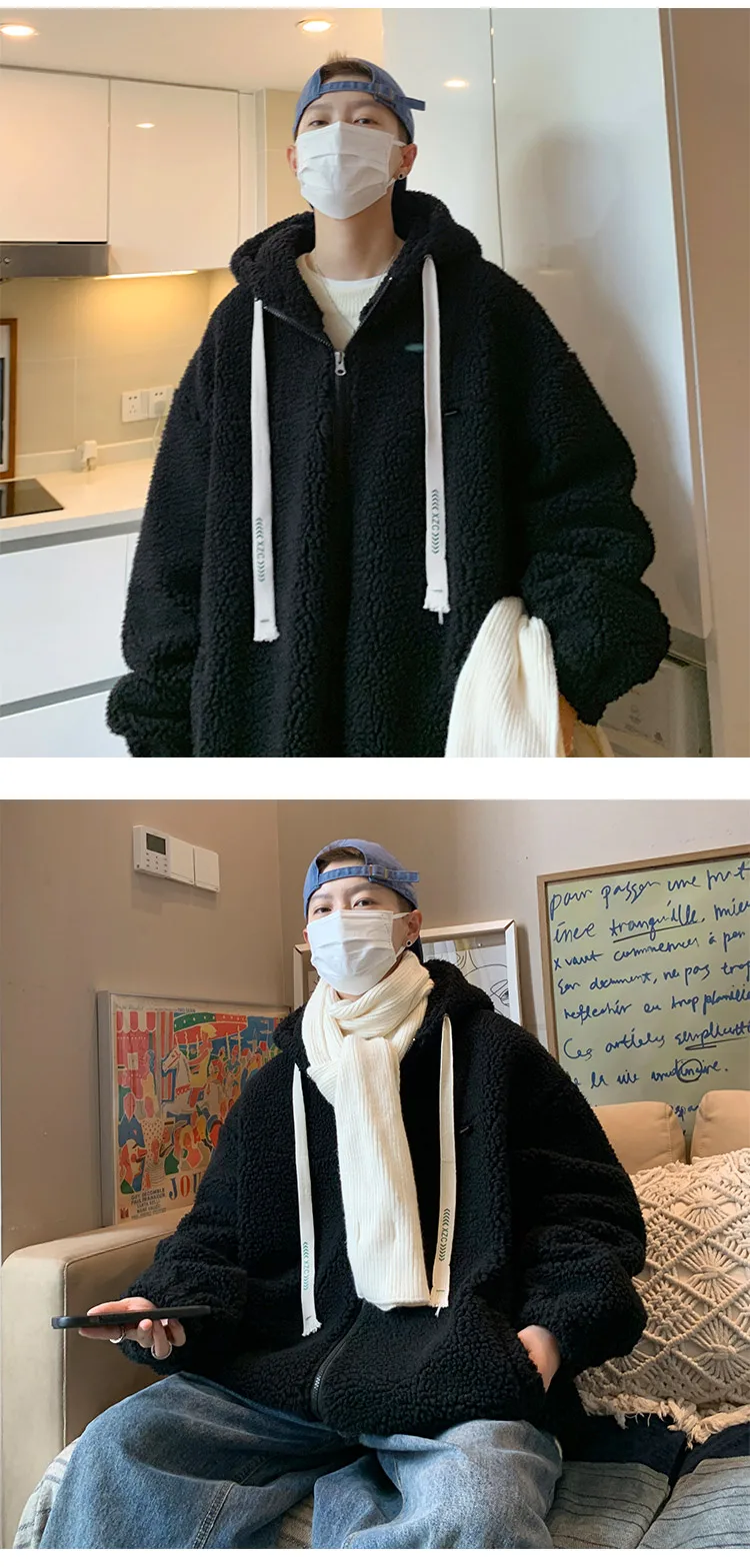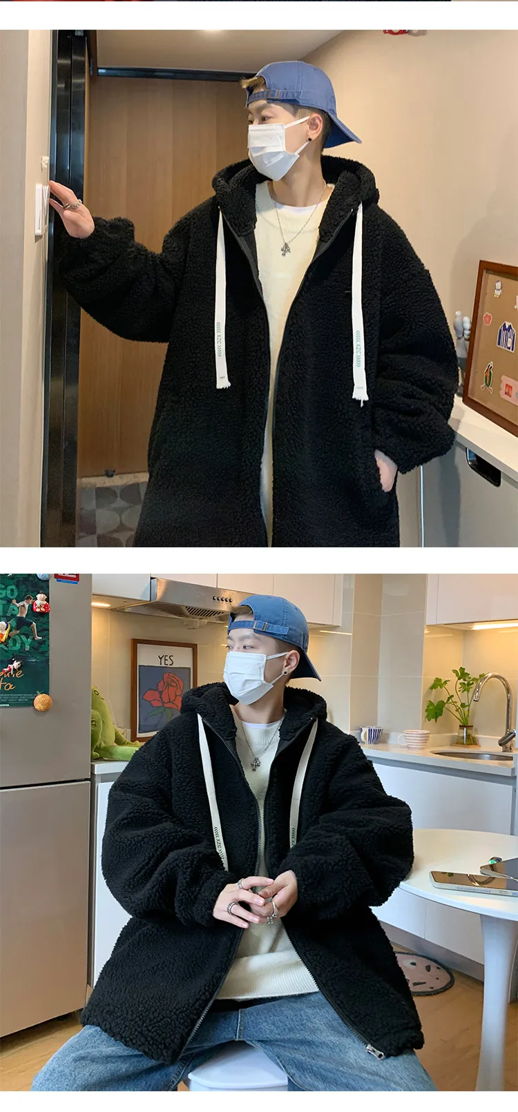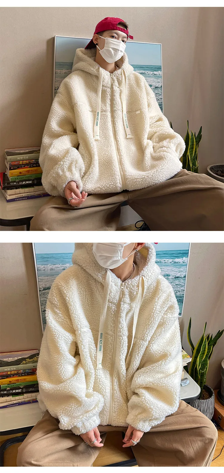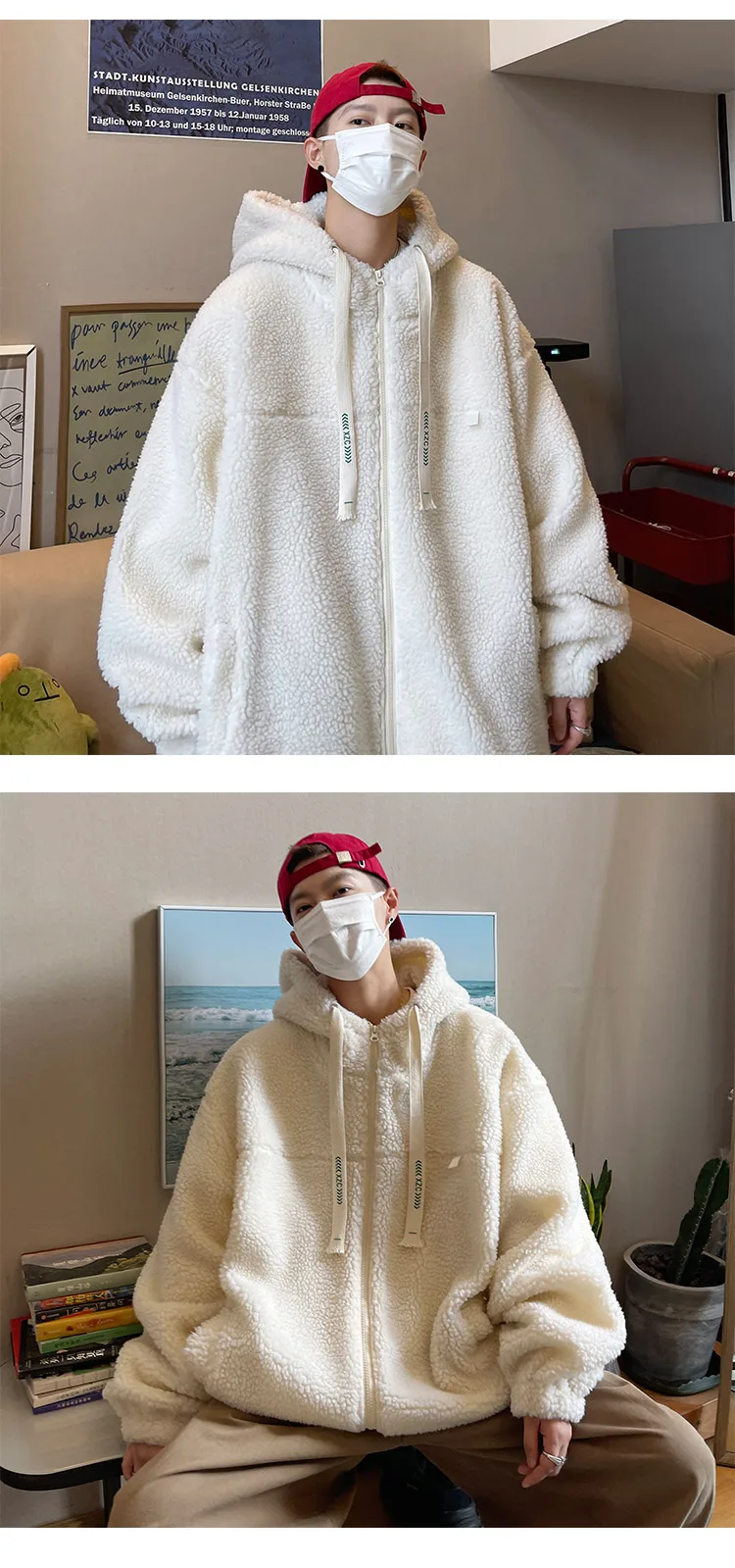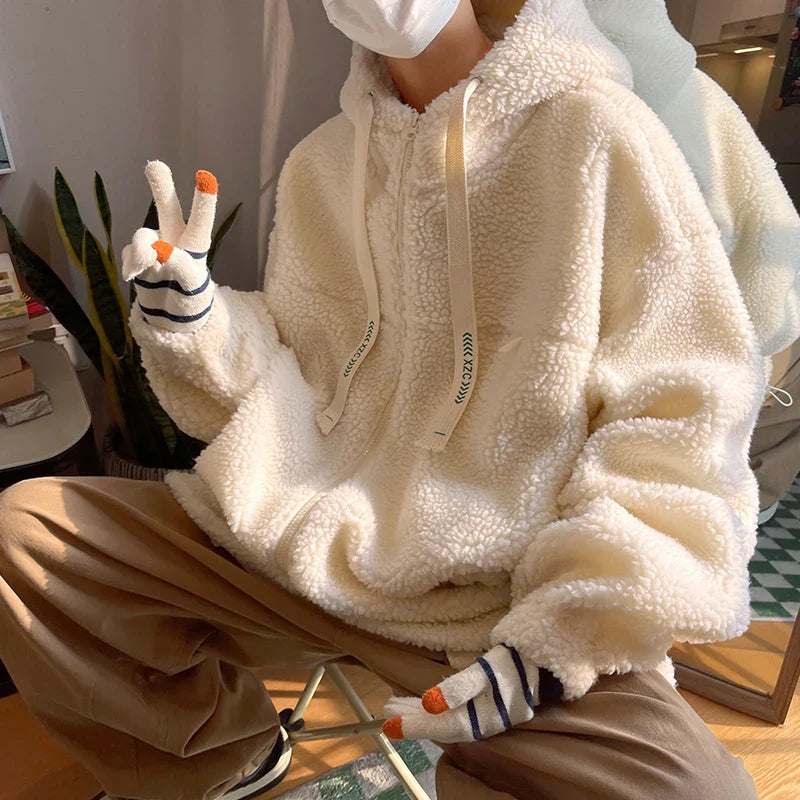 saferido Winter Jacket Men Warm Fashion Retro Thickened Hooded Jacket Men Korean Clothes Loose Short Coat Mens Thick Lamb Wool Jackets