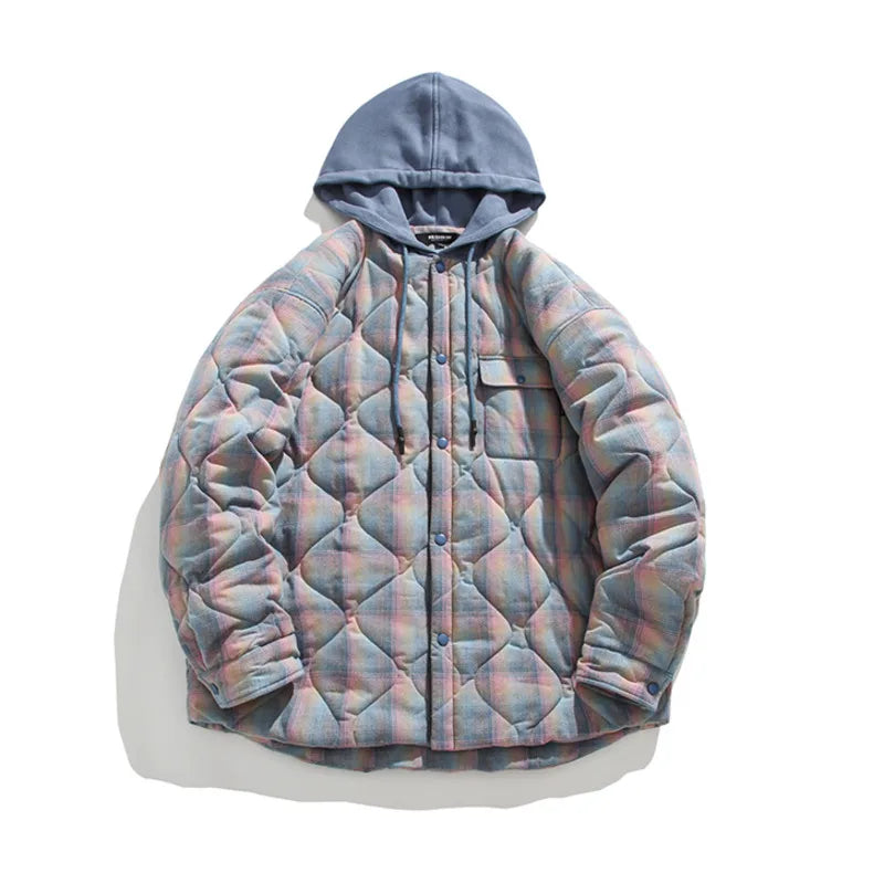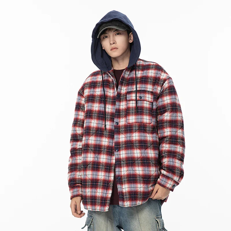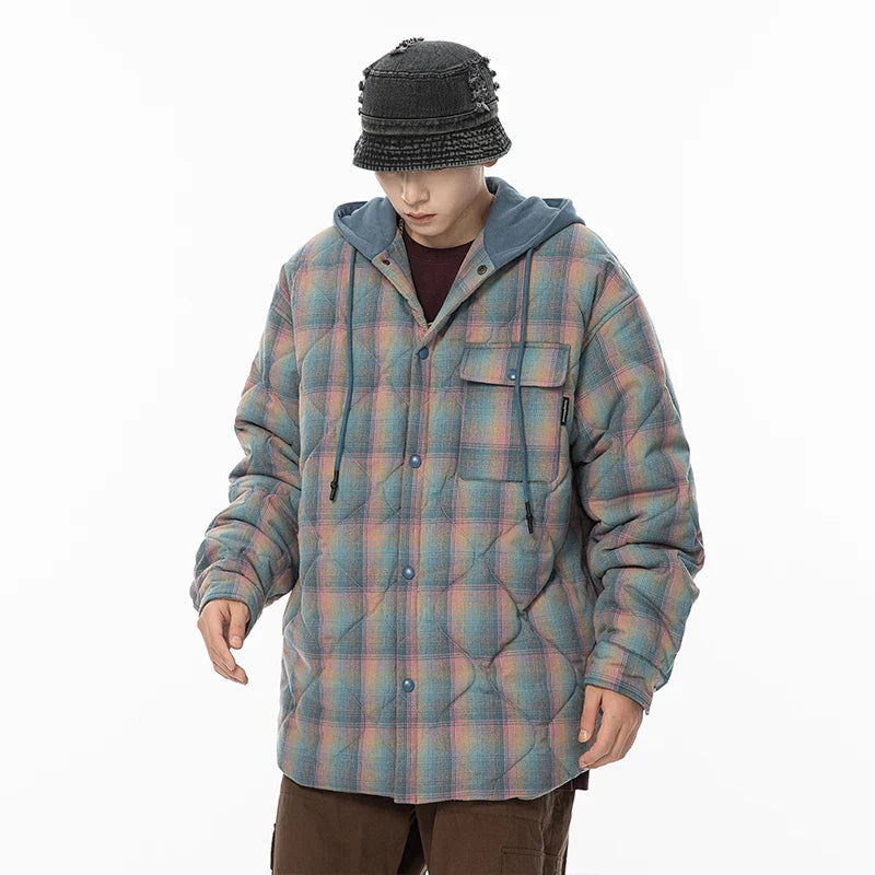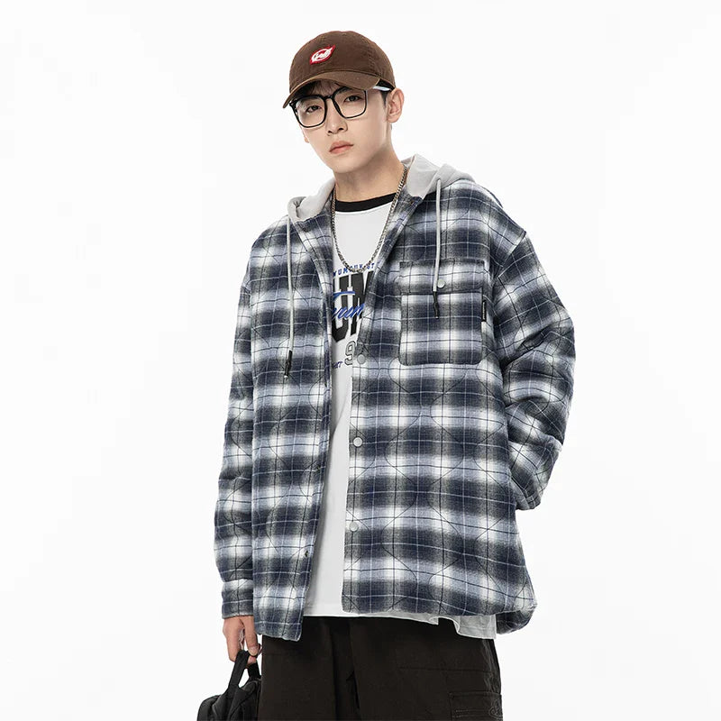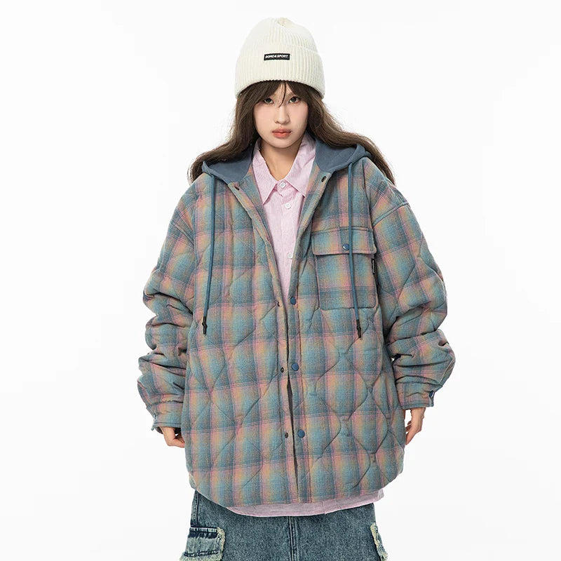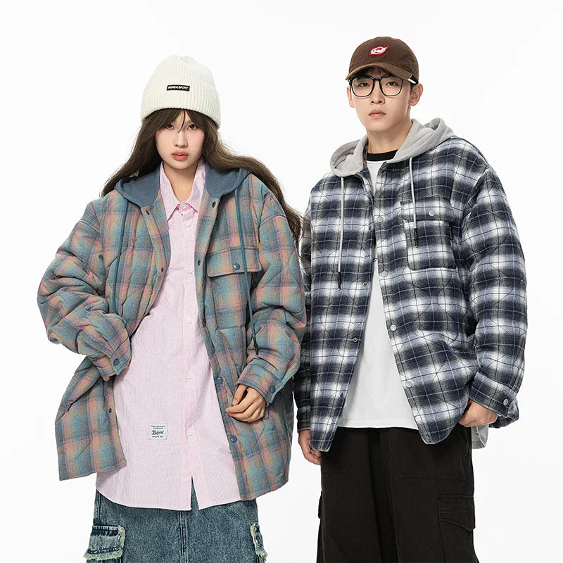 saferido Winter Jacket Men Warm Fashion Thickened Plaid Jacket Men Oversized Streetwear Korean Loose Short Coa Mens Couple Thick Hooded Jackets