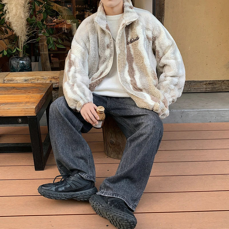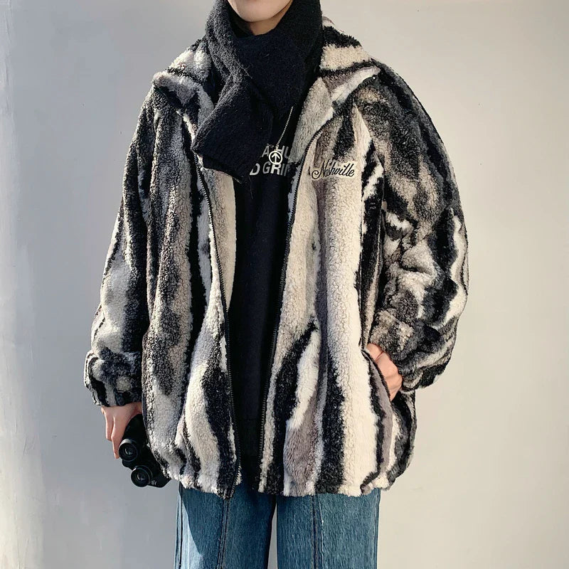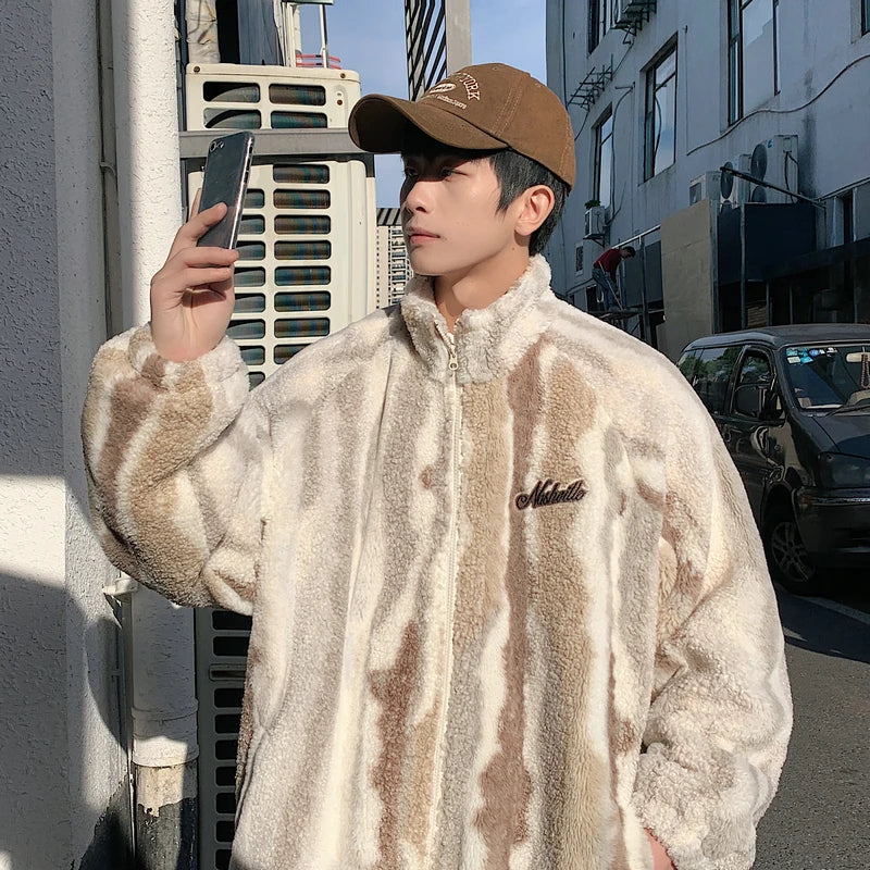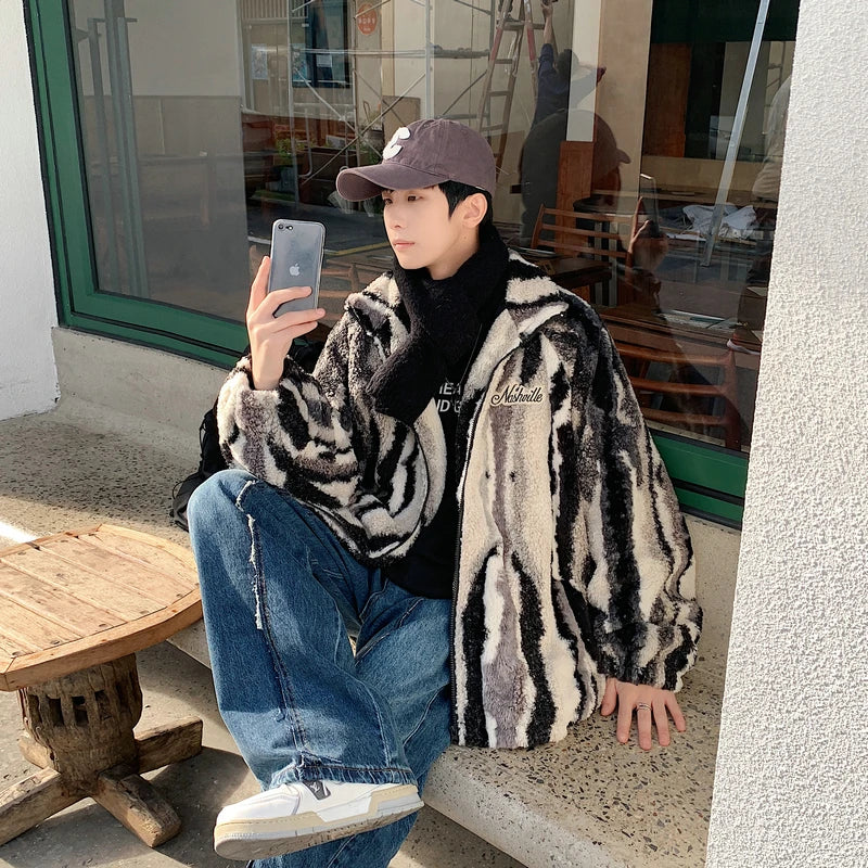 saferido Winter Men Casual Kpop Jackets Coats Mens Streetwear Korean Fashions Luxury Coats Harajuku Striped Lambswool Parkas