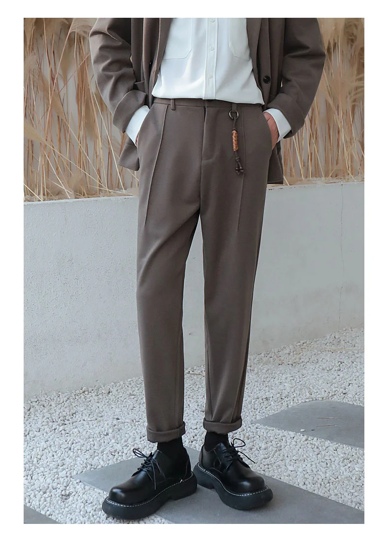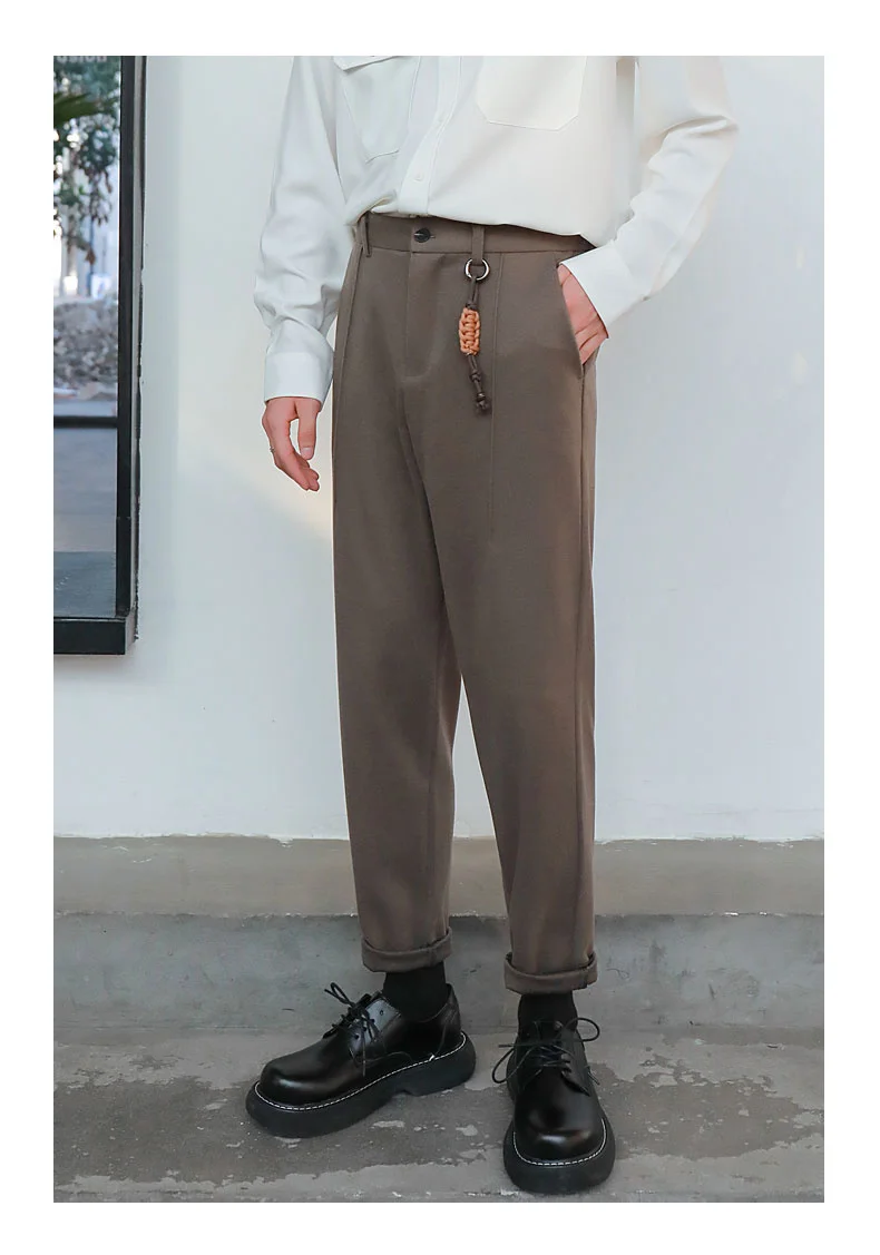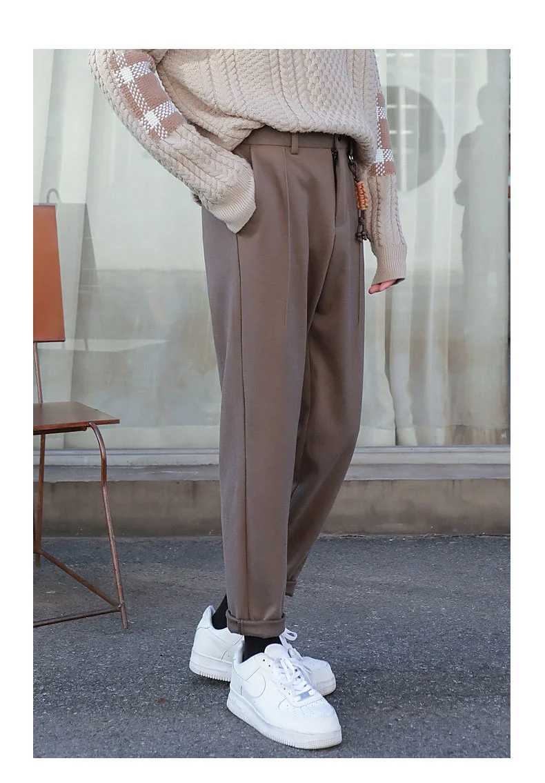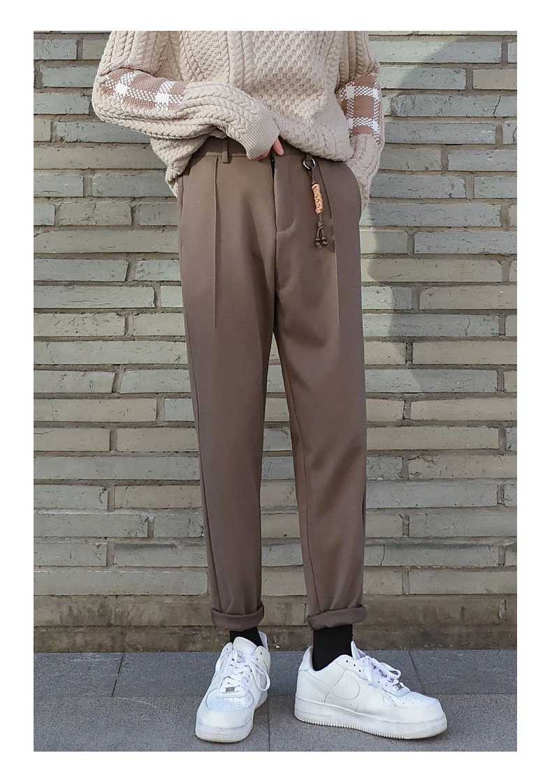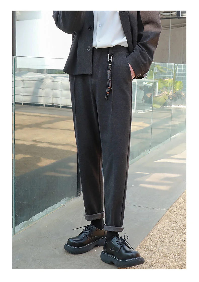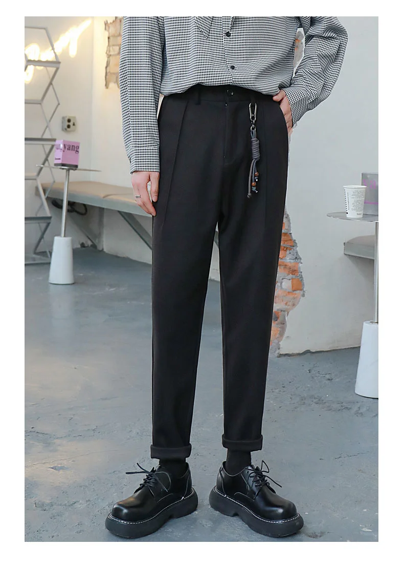 saferido Winter Men's Thicken Wool Pants Slim Fit Casual Pants British High-quality Straight Pants Grey/brown/black Color Trousers