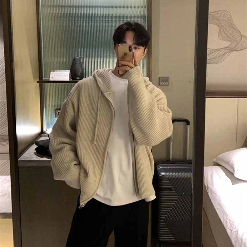saferido Winter Thick Sweater Cardigan Men Warm Zipper Knitted Coat Men Korean Loose Thickened Cardigan Sweater Mens Jumper Clothes M-2XL