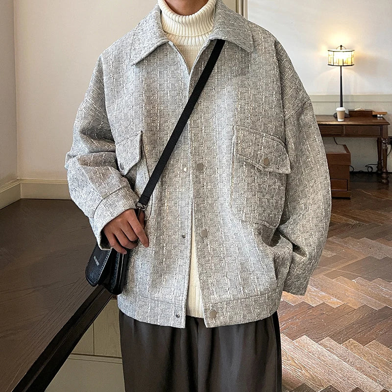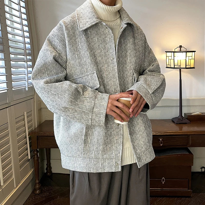 saferido Winter Thickened Woolen Coat Men Warm Retro Thick Woolen Jacket Men Streetwear Loose Short Woolen Coat Mens Oversized Jackets