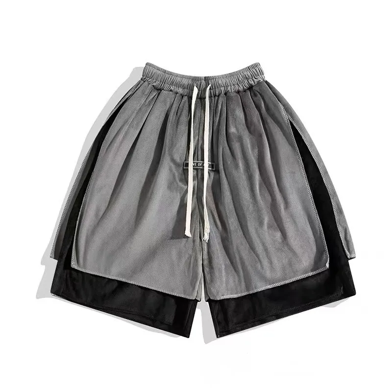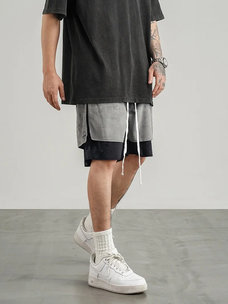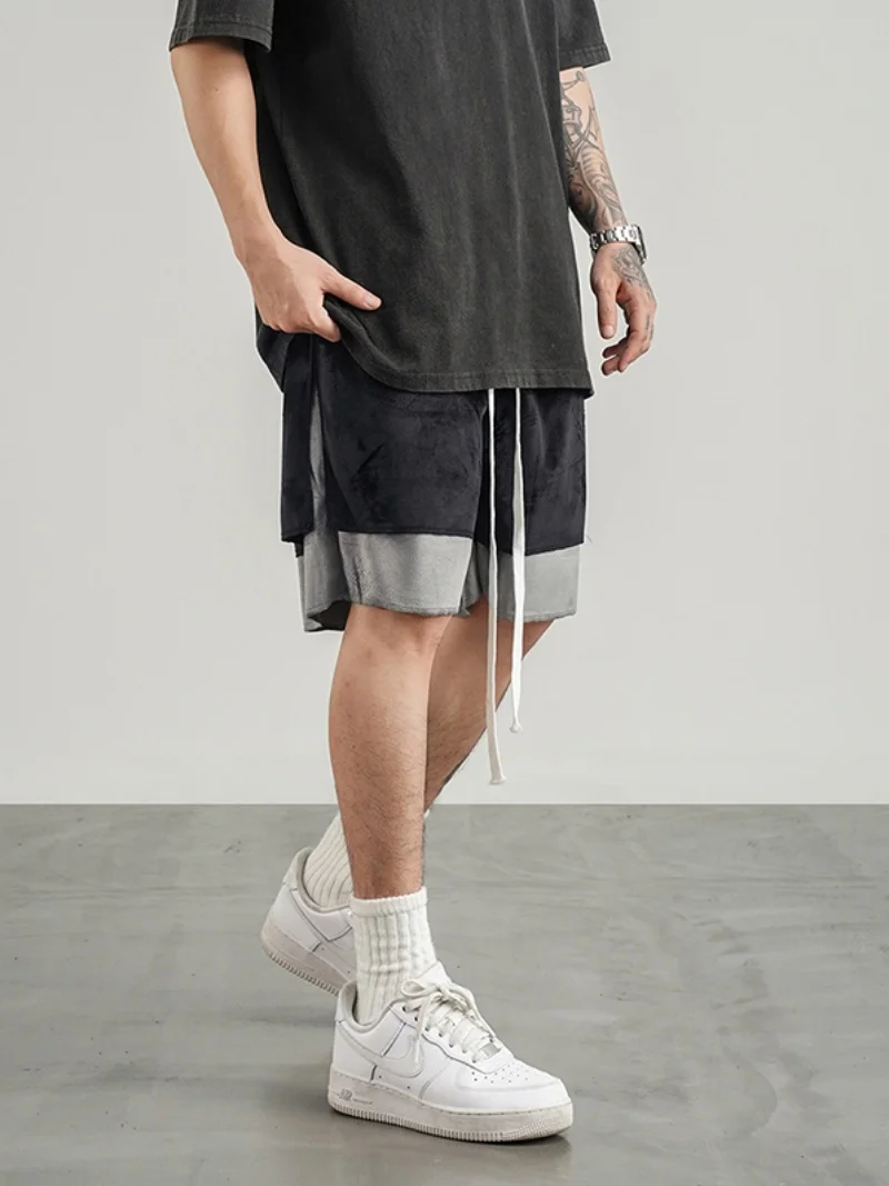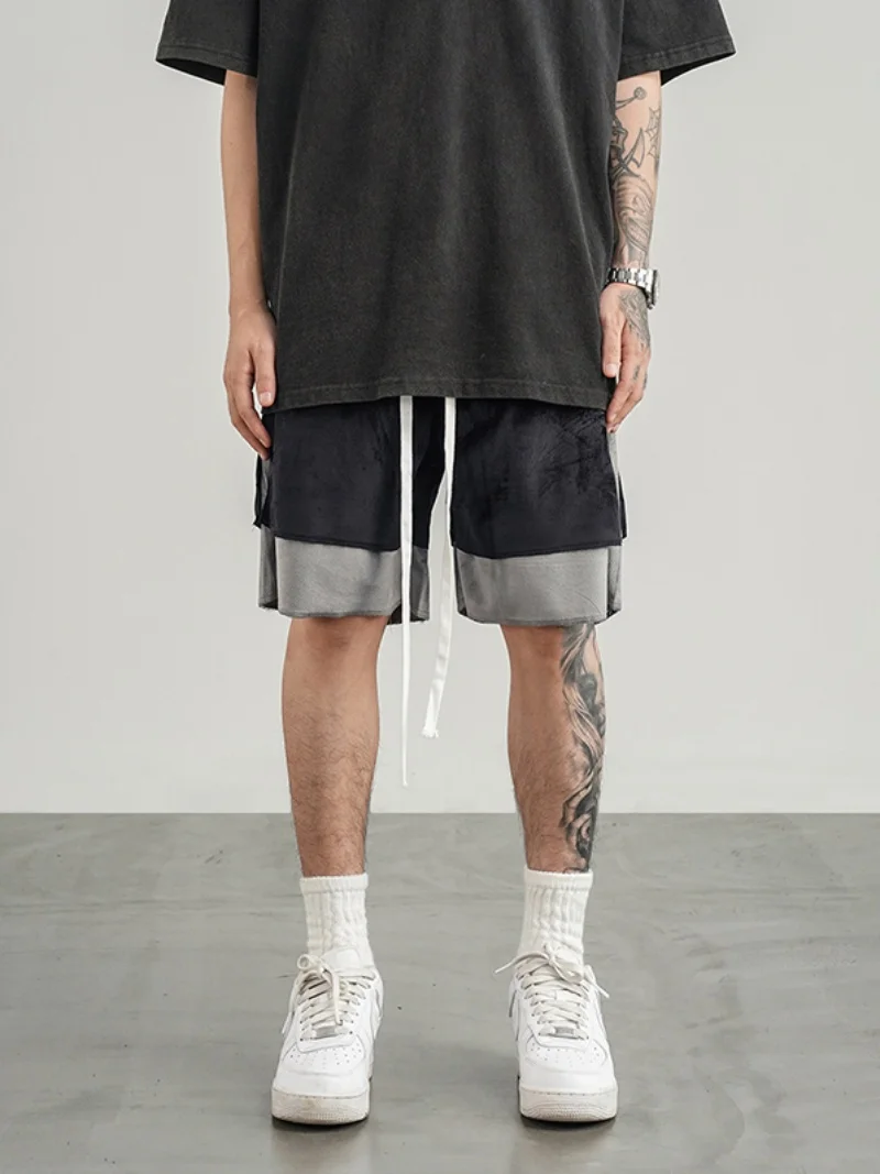 saferido Y2k American Street Sports Shorts Men's Summer Design Sense Fashion Pure Cotton Velvet Loose Basketball Casual Split Pants