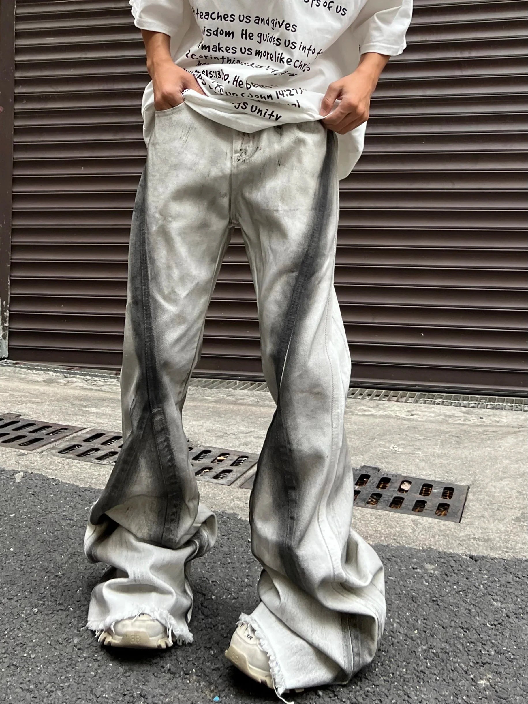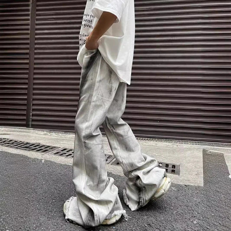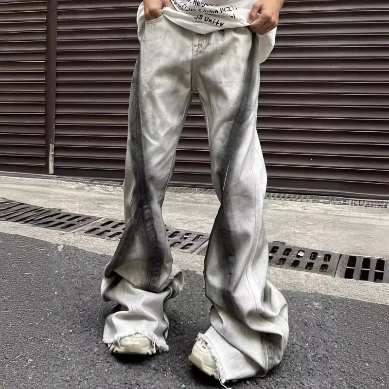 saferido Y2K Streetwear Tie Dye White Baggy Flare Jeans Pants Men Designer Clothes New Rock Old Women Long Trousers Roupa