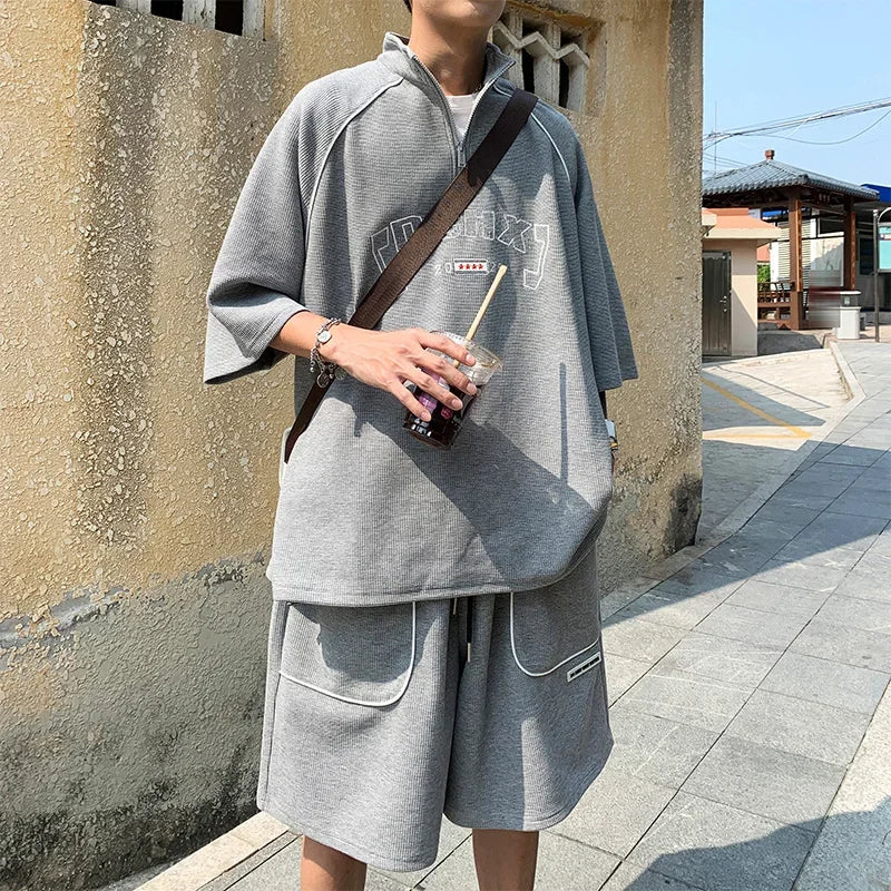 saferido Y2K Summer Streetwear Tracksuit Men Hip Hop Loose Suit Korean Fashion T-shirt + Shorts Sets 2024 Mens High Street Two-piece Sets