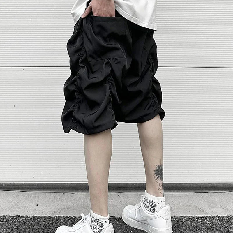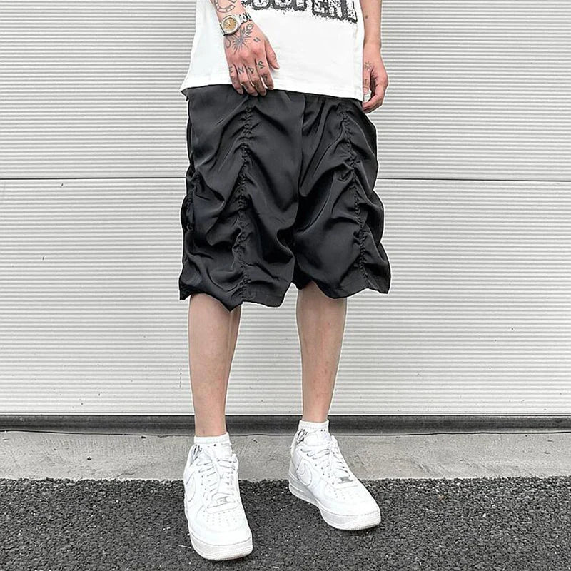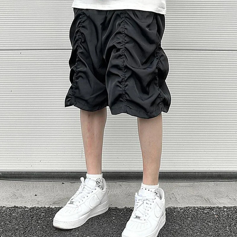 saferido Y2K Summer Thin Qucik Dry Drawstring Shorts Men's Ruched Streetwear Wide Leg Baggy Five Point Pants Oversized Pleated Short