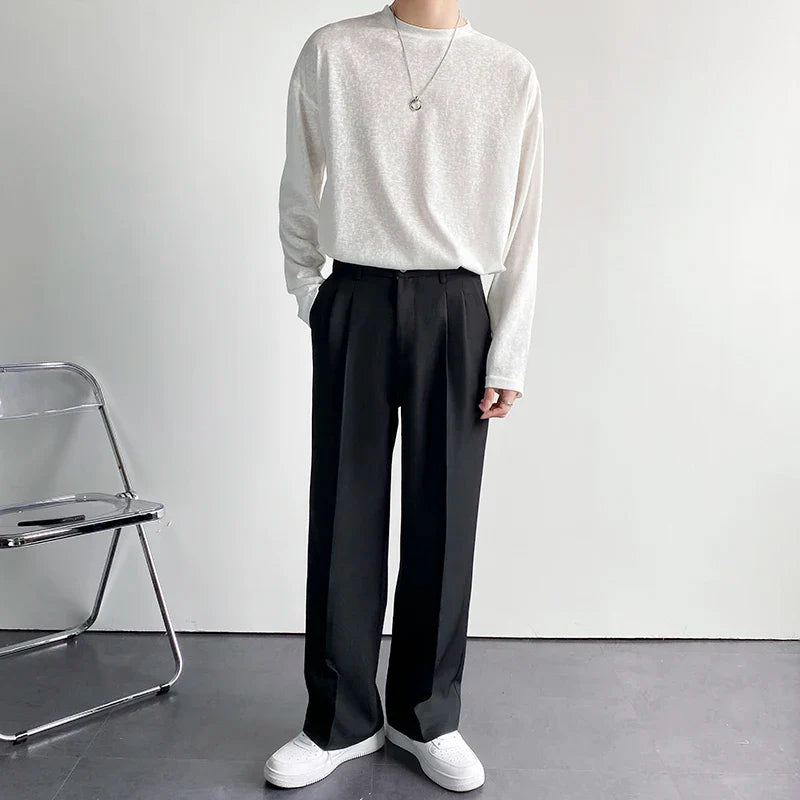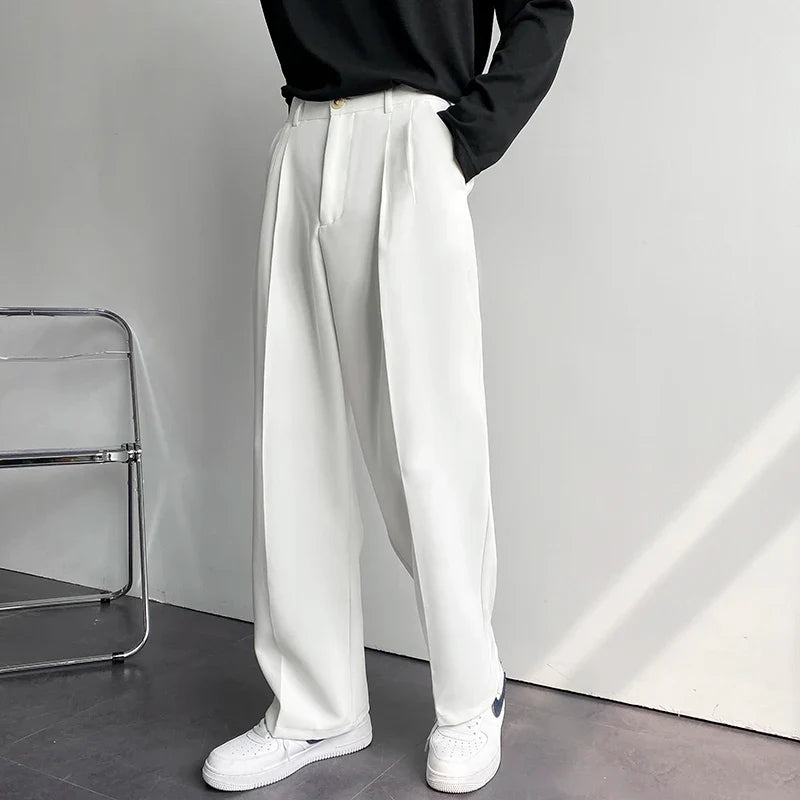 Solid Color Formal Suit Pants Men Korean Fashion Loose Casual Pants Men Harajuku Streetwear Wide-leg Straight-leg Pants Men