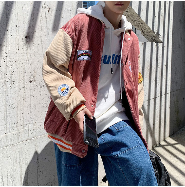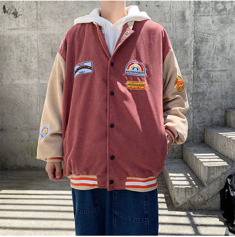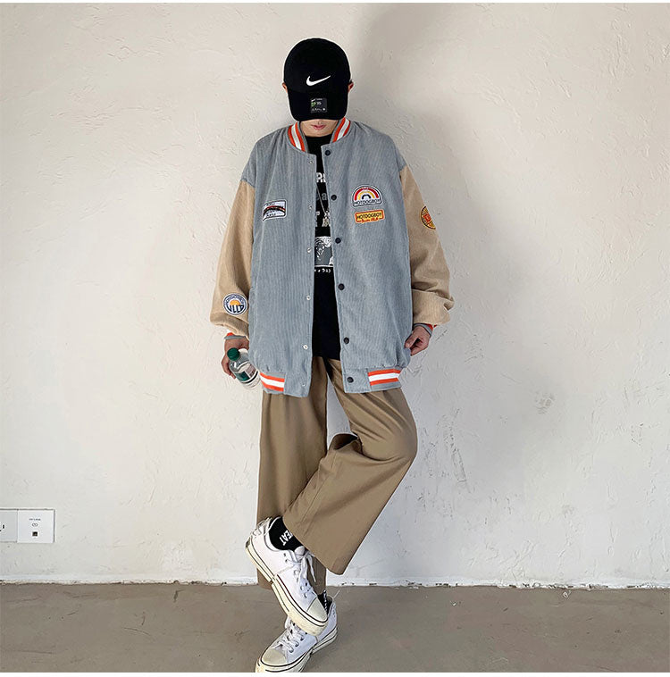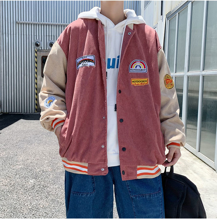 Spring and autumn corduroy jacket men's ins tide brand Harajuku style Korean style versatile handsome loose Baseball Jacket