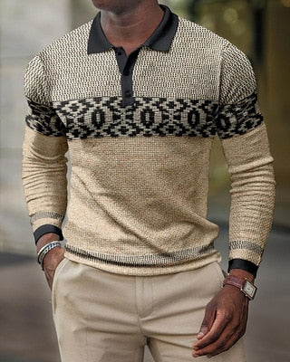 Spring and Autumn Europe and America Men's Polo Shirt Pattern 3D Pattern Clothes Men's Walking Leisure Fit POLO Shirt
